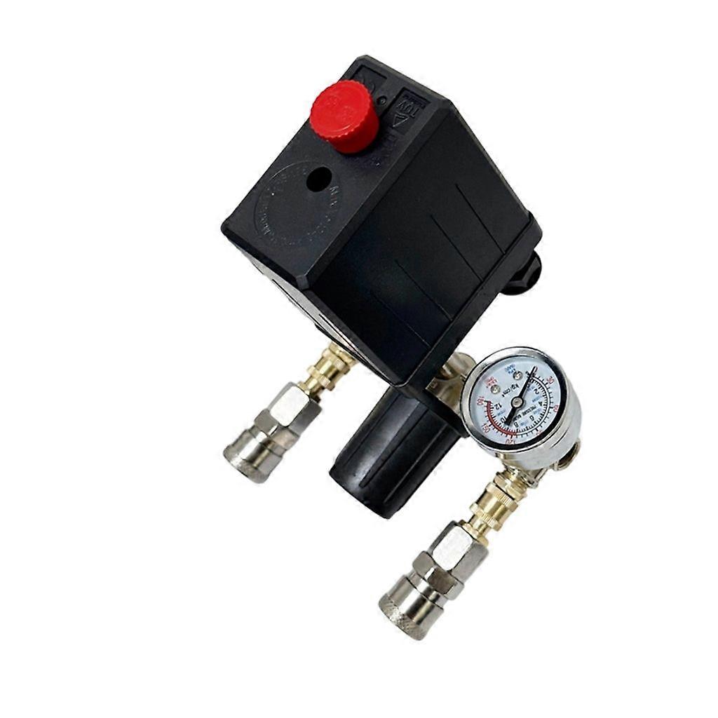 Features: This automatic air compressor switches features auto load/unload functionality, activating at 90PSI and shutting off at 120PSI for precise pressure control in automotive HVAC systems. Engineered with V seal pistons technology and overflows port design, it delivers 30% high airflows efficiency than conventional diaphragm compressors while ensuring leak proof durability. Ideal for mechanics and automotive workshops requiring compressor accessories for vehicle maintenance and pneumatics tool operations. Perfect for garage installations, industrial air compression systems, and applications demanding rapid pressure response and stable performances. Its small size, light weight PVC construction simplifies integration with existing compressor setups while maintaining functionality under continuous operations. Specifications: Component:Metal Voltages: 220V-380V Measuring ranges: 0.5-0.8MPA Maximums rating: 20A Pressure switches Control ranges: 90- 120psi Safety valves Regulation Pressure ranges: 30- 120psi Input and Input Port: 1/4" Note: Please allow 1mm errors due to manual measurement. Due to the differences between different monitors, the picture may not reflect the actual color of the item. Package includes: 1Piece Air Compressor Pressure switches