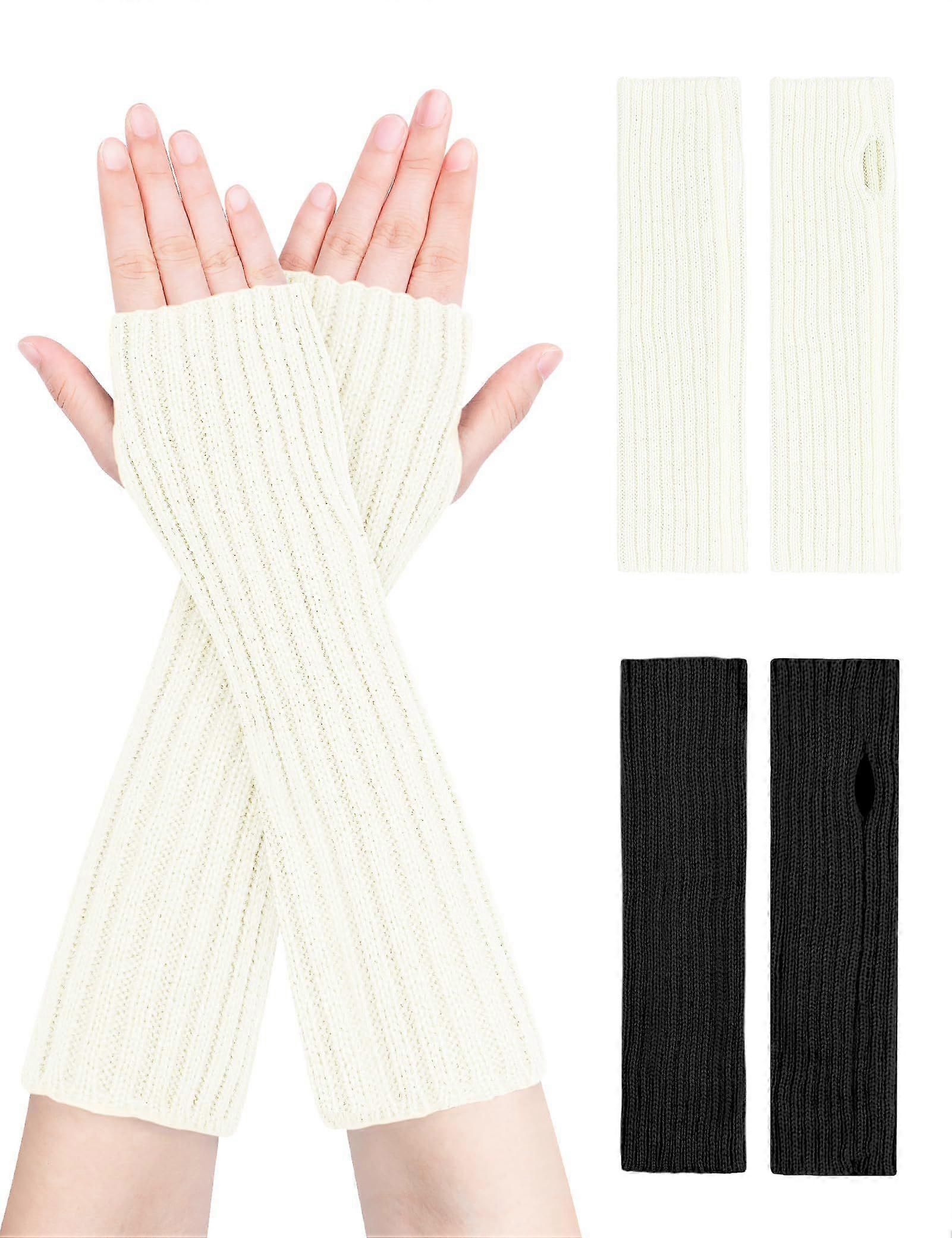 2 Pairs Knitted Fingerless Gloves Winter Long Thermal Arm Half Finger Gloves for Women