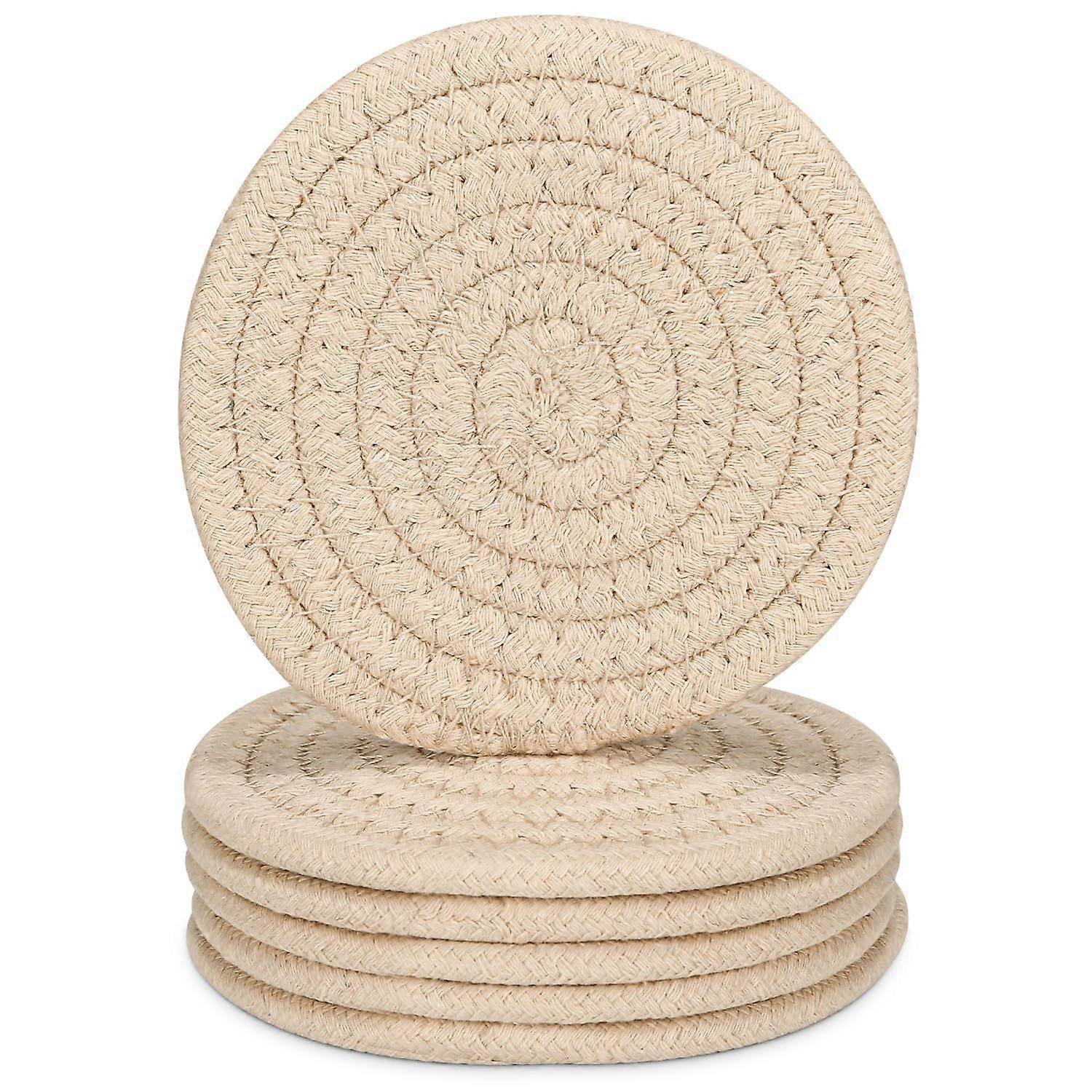 6 Pcs Coasters Set for Drinks Absorbent Modern Dinning Room Decor Housewarming Woven Braided Cup Mat Hot Cold Drinking Good Choice (Beige)