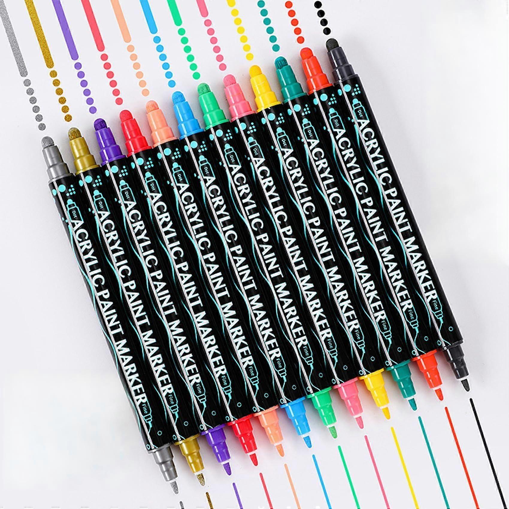 12 Colors Acrylic Paint Pens, Dual Tip Markers, Waterproof, Acrylic Markers