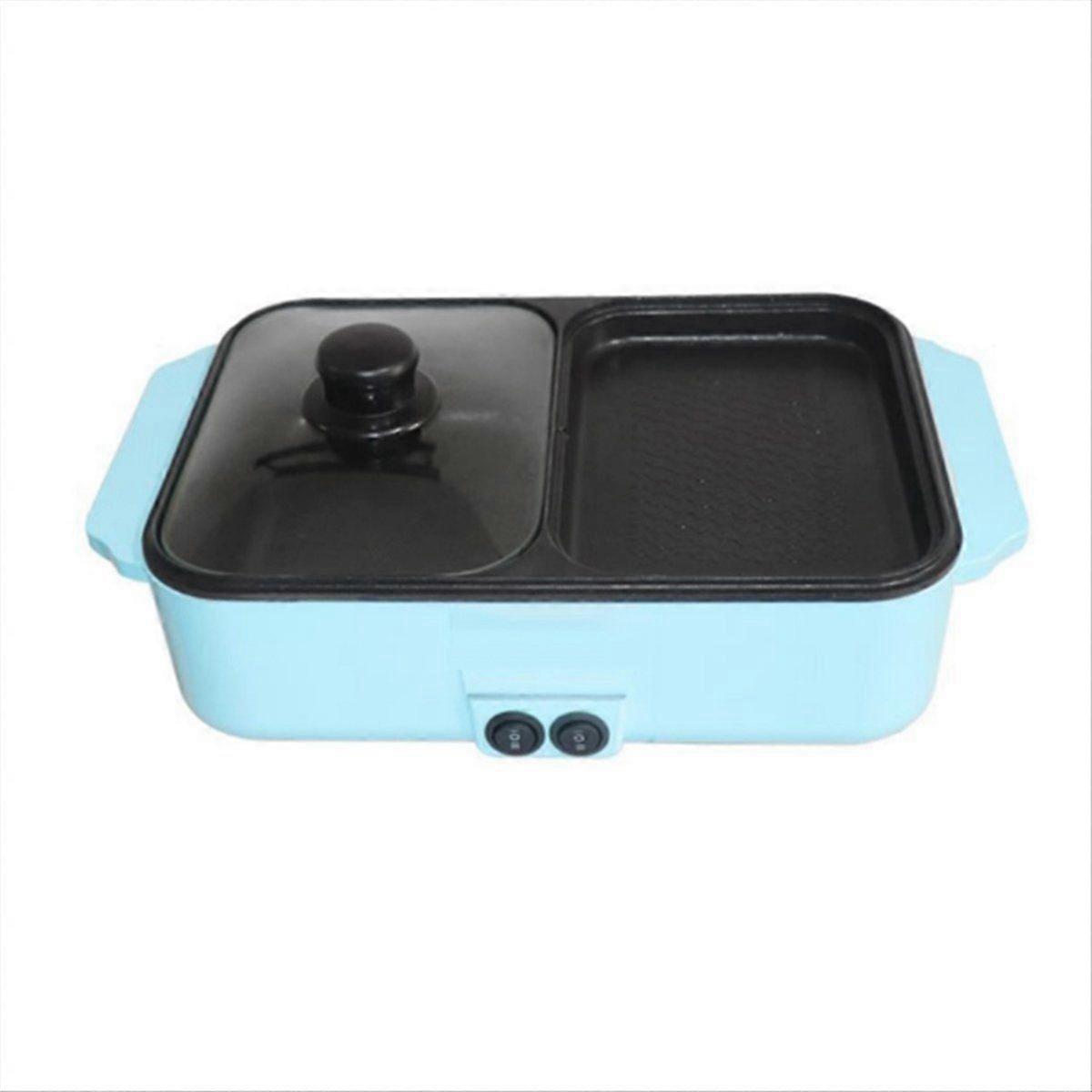 2-in-1 Indoor Non-Stick Electric Hot Pot and Frying Pan Portable BBQ Grill for Family Gatherings (EU),A