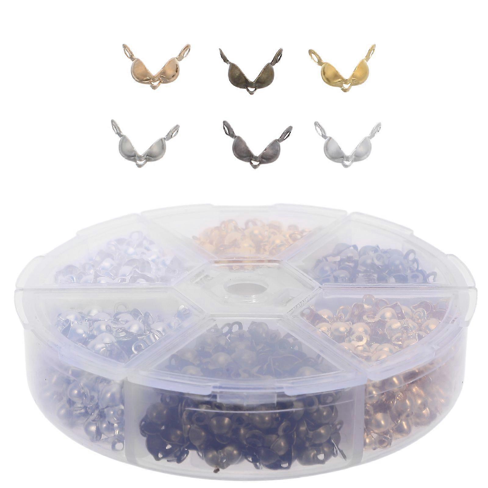 600pcs Crimp Beads: Knot Covers For Diy Bracelet Jewelry Making - 6 Colors Clamshell Fold-Over Metal Plated Open Bead Tips Endcaps