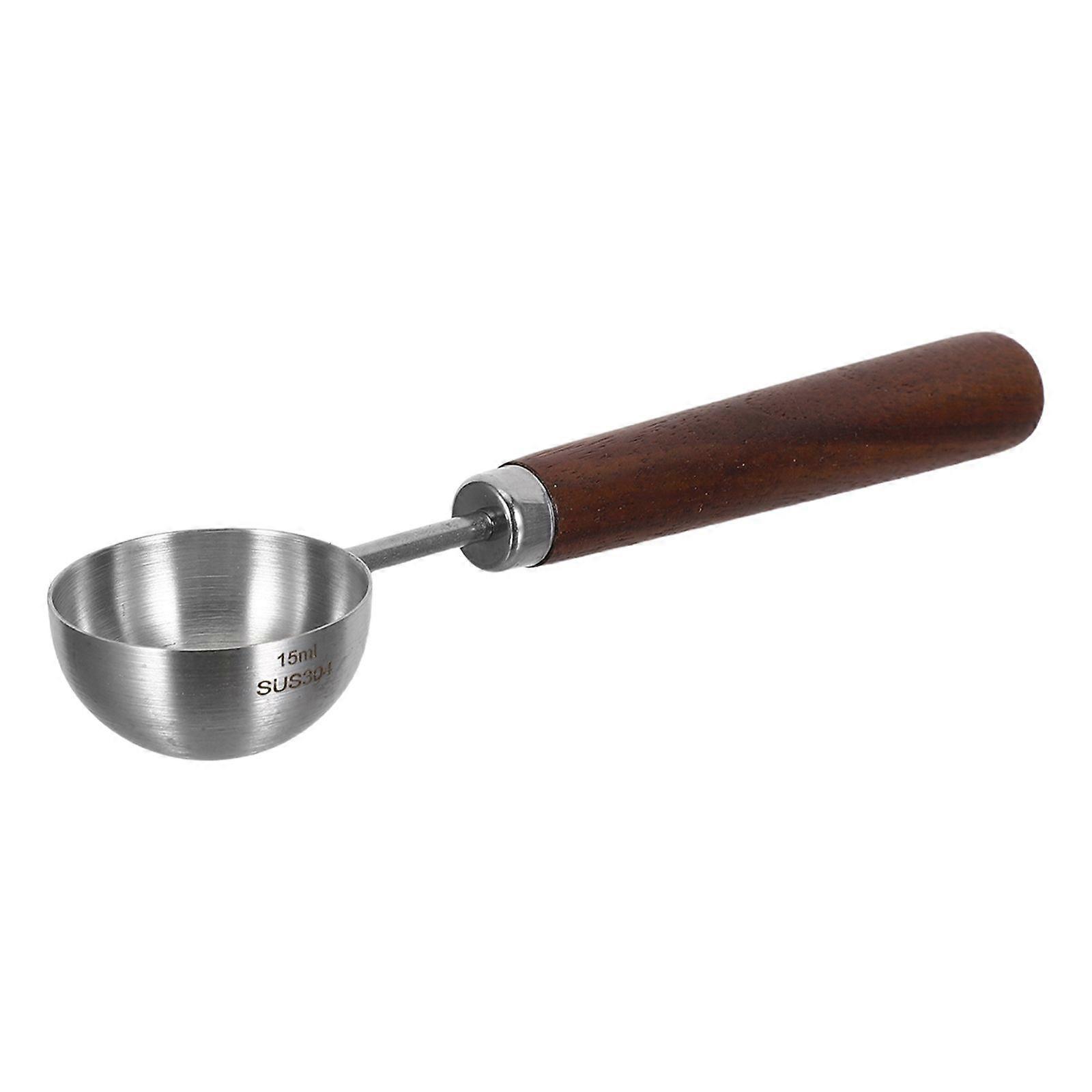 Coffee Measuring Spoon with Wood Handle - Stainless Steel Scoop 15ml Capacity - Tablespoon Measurer for Ground Espresso Beans Home Kitchen Use