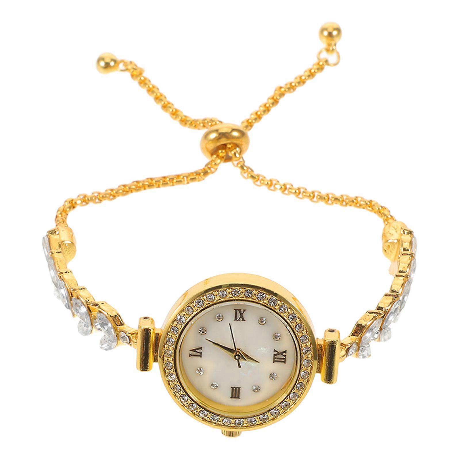 Description Adorn your wrist with this bangle watches for women featuring a beautiful round dial and dazzling rhinestones. This bracelet dress watch offers a stylish, gold alloy quartz wristwatch look that enhances any formal outfit. The elastic band watch ensures comfort, making it the ideal accessory for birthday celebrations, festive parties, or daily wear when elegance is desired. Features -Color:Multi -Material:Zinc alloy, quartz -Size:10.00X3.00X1.00cm/3.93X1.18X0.39in -Elegant design: the gold bangle watches for women feature a dazzling rhinestone bracelet watch style, enhancing any outfit with glamour and sophisticated charm at special events -Comfortable fit: with a unique adjustable band watch and bracelet chain watches design, this decorative watch ensures allday comfort and secure wear for women seeking stylish accessories -Precise timekeeping: featuring a analog quartz wristwatch movement, this analogue watch offers accurate time, so ladies can manage daily tasks efficiently and stylishly -Presentchoice: the dress wrist watches make an ideal dainty christmas present for female friends or family, adding a vintage watch appeal to birthdays, holidays, and celebrations -Durable quality: crafted with alloy quartz wristwatch materials, this women’s rhinestone bracelet watch resists daily wear, maintaining its sparkling appearance for longterm usePackage list: 1 x Rhinestone Bracelet Watch