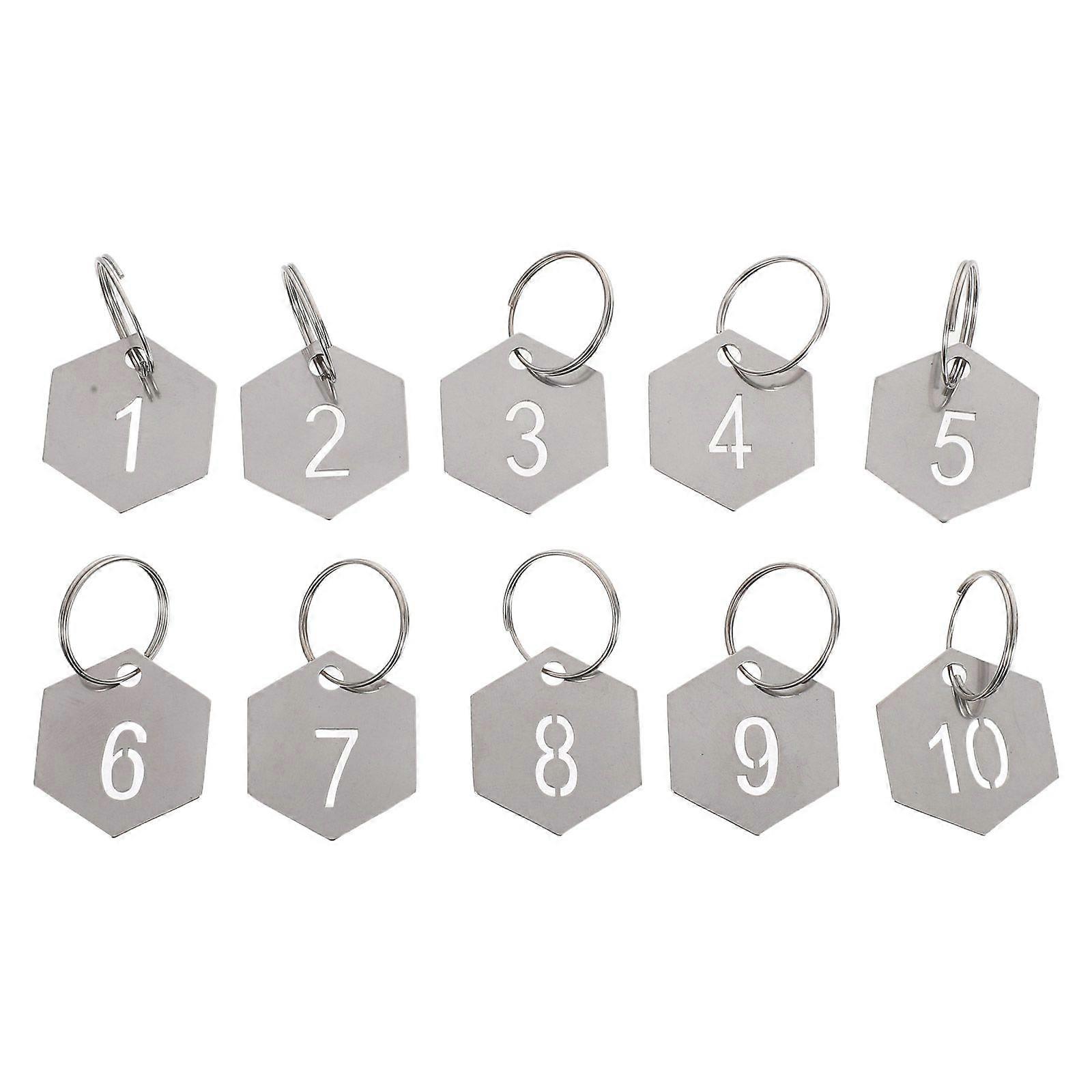 10pcs Hollowed Stainless Steel Number Tags Metal Numbered 1-10 Labels Coat Id Tags With Key Rings For Backpack Hooks Dormitory Keys House Lockers