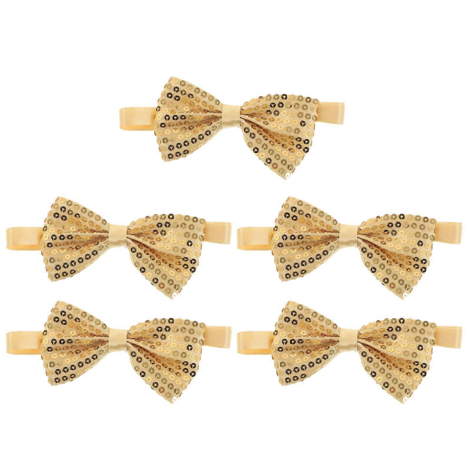5pcs Sequin Bow Ties Kids - Pre-Tied Tux Bowtie With Adjustable Strap For Boy Christmas Wedding Graduation - Cosplay Bow For Carnival Yellow