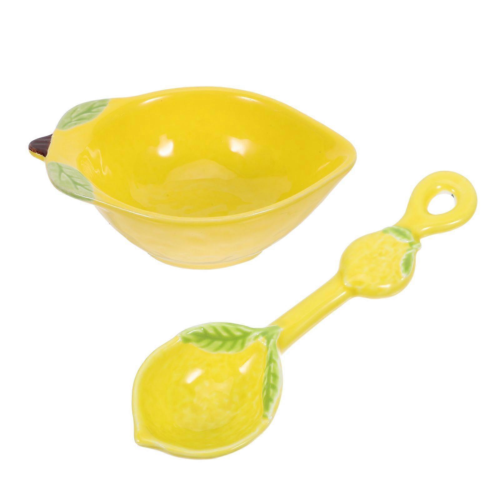 2pcs Ceramic Appetizer Plates - Ceramic Lemon Shaped Side Dishes with Spoons - Seasoning Plates - Dipping Tray - Pinch Relish Sauce Dishes