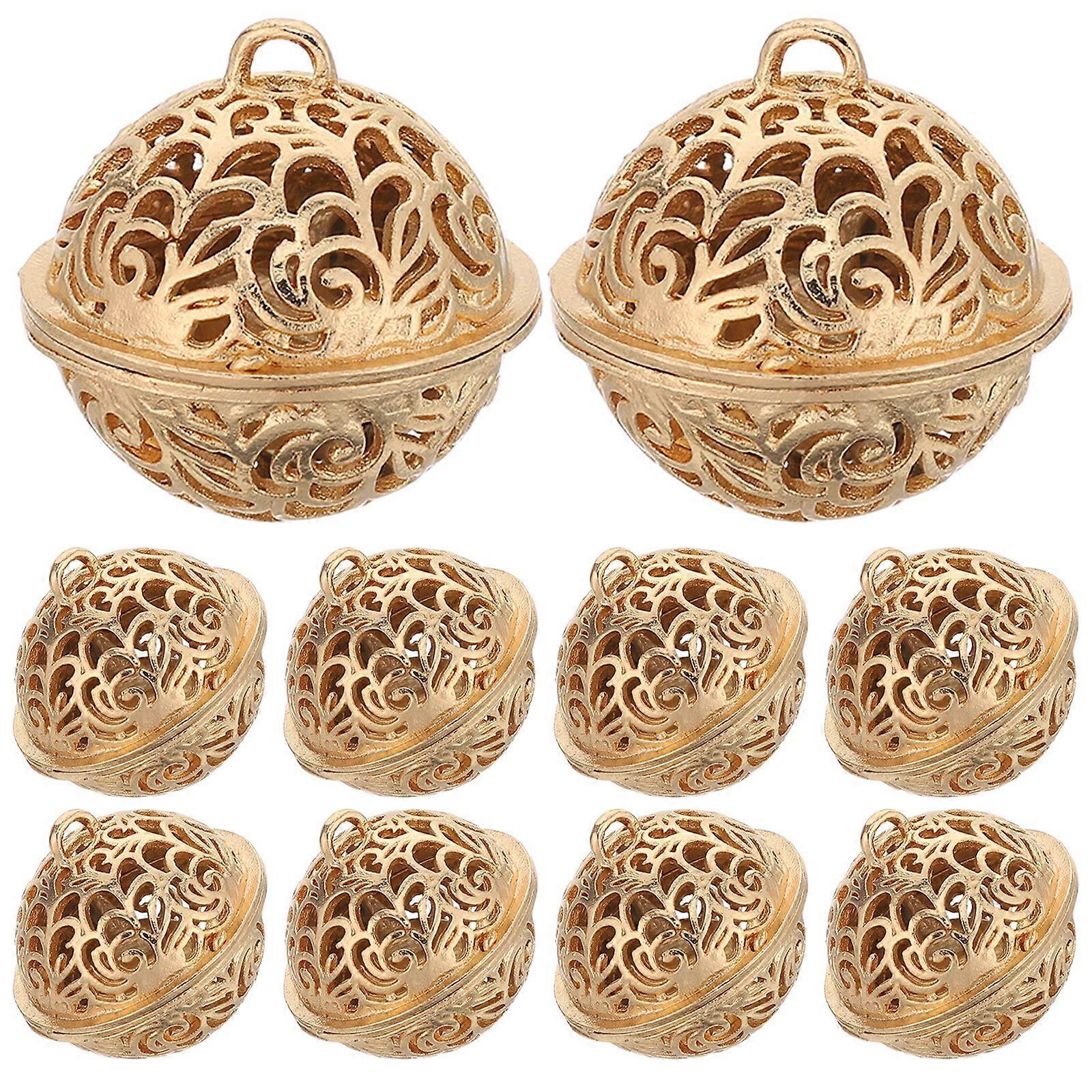 10pcs Hollow-Out Bells: 1" Retro Tin Alloy Electroplated Hollow Bells For Diy Craft Making Christmas Ornaments Vintage Hanging Pendant Wind Chime Acce
