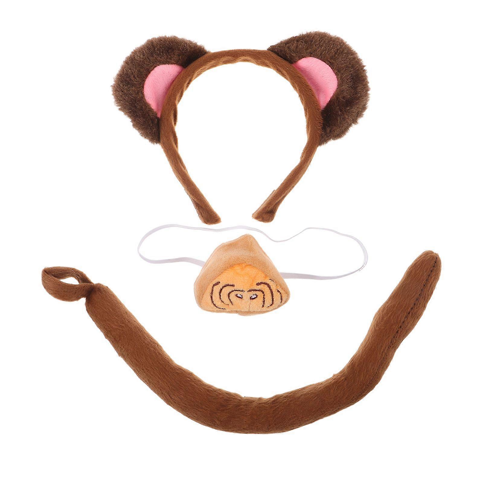 1 Set Monkey Costume Set for Kids Adults Women - Monkey Ears Headband Nose & Tail - Fancy Dress Cosplay Party Supplies for Halloween Masquerade Christ