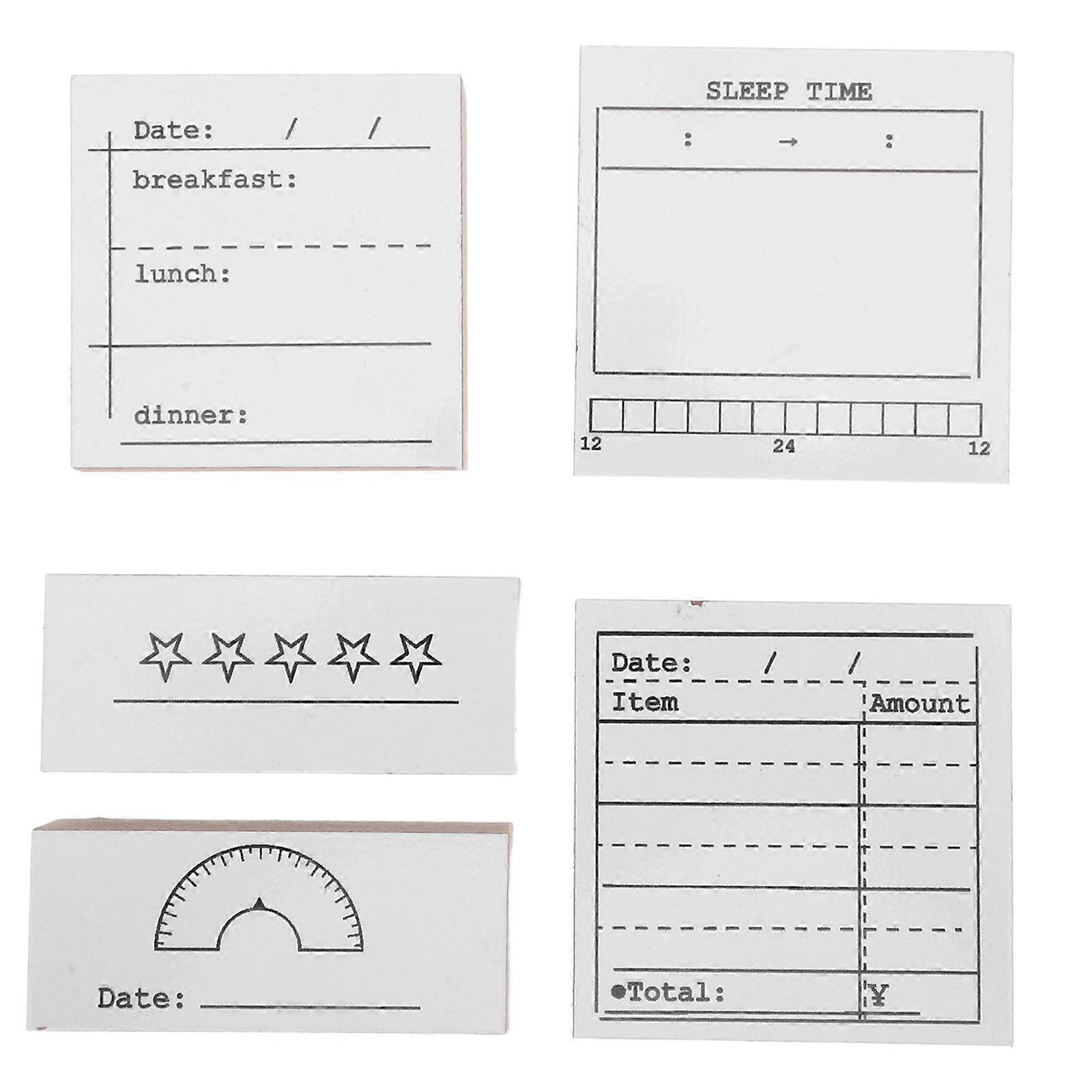 5pcs Journal Stamps Rubber Stencils Daily Meal Record Sleep Weight Management Financial Record Stamps For Diy Making Crafts Japanese Scrapbooking Supp