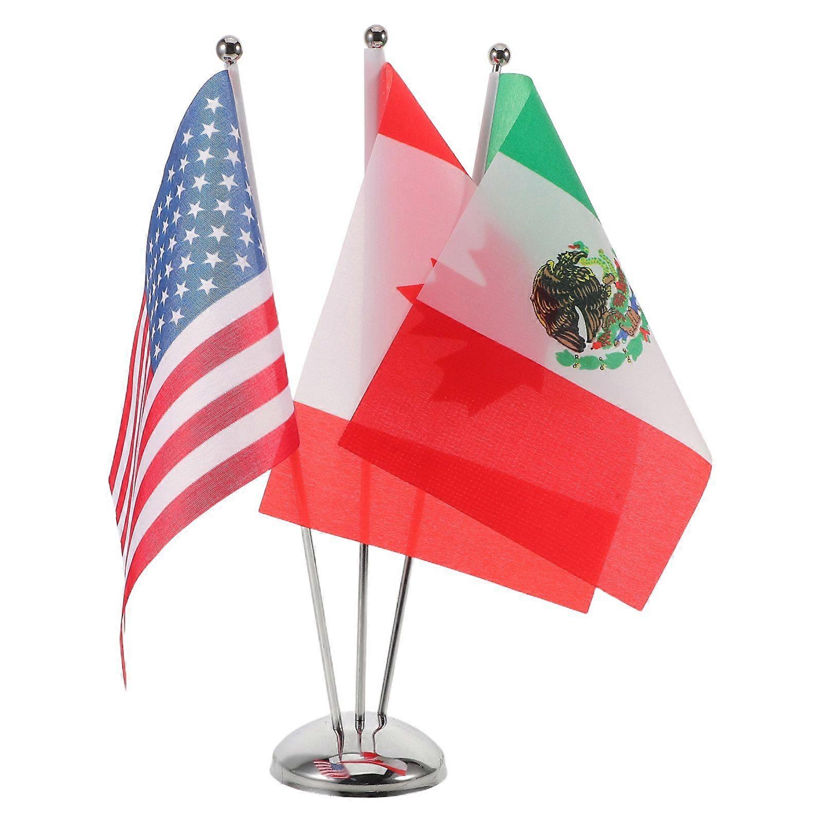 1 Set Miniature USA Canada Mexico Table Flags - Desktop Decoration Office Banner With Stainless Steel Pole Holder For Meetings International Events
