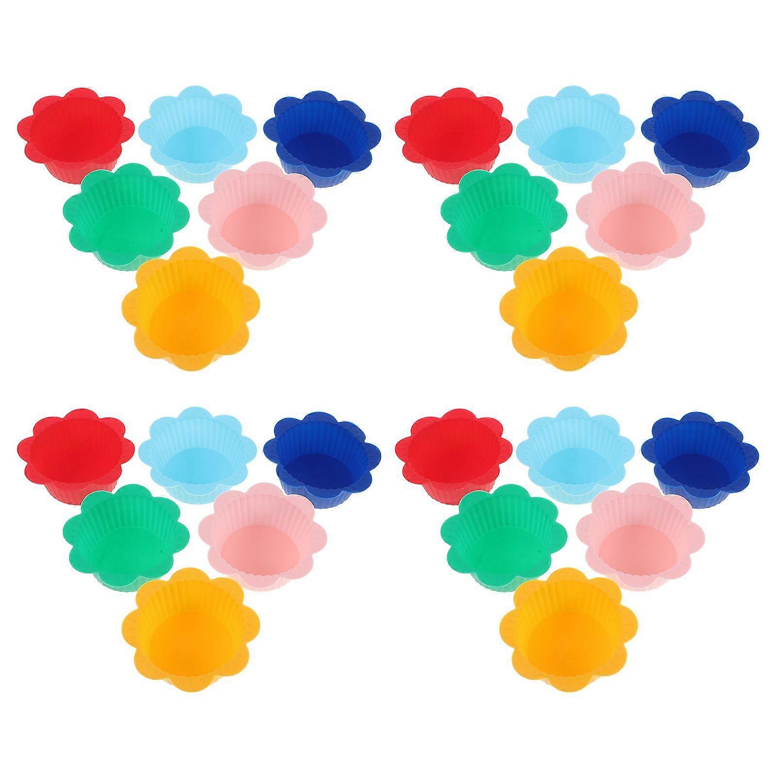 24pcs Silicone Cupcake Liners: Reusable Non-Stick Baking Cups 6 Colors - Dishwasher Safe Muffin Liners for Cupcakes Muffins and Desserts - Baking Supp