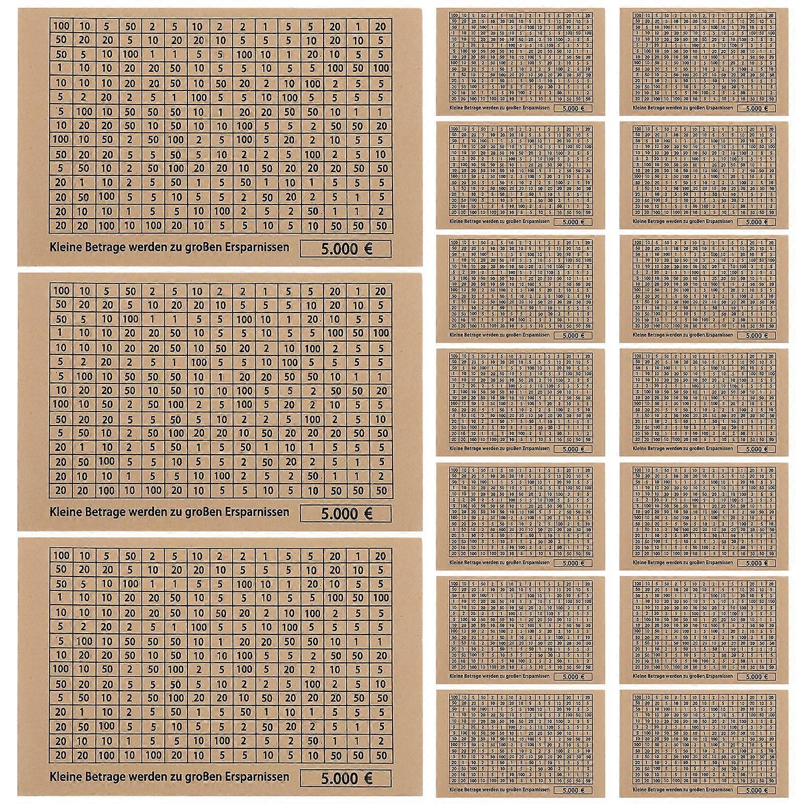 50 Sheets Money Saving Strategy Sheet - 5000 Euros Budgeting Challenge Tracker Charts - Savings Challenge Box Number Stickers Digital Templates For Pl