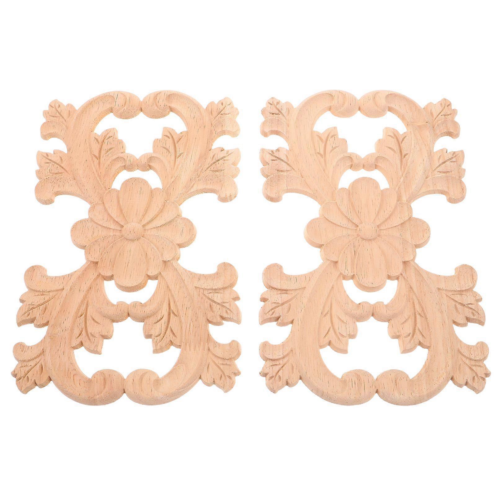 2pcs Wood Bow Appliques: Furniture Wood Appliques Onlays Decorative Frame Center Carving Decal Diy Flower Heart Unpainted Carved Overlay For Door Wall