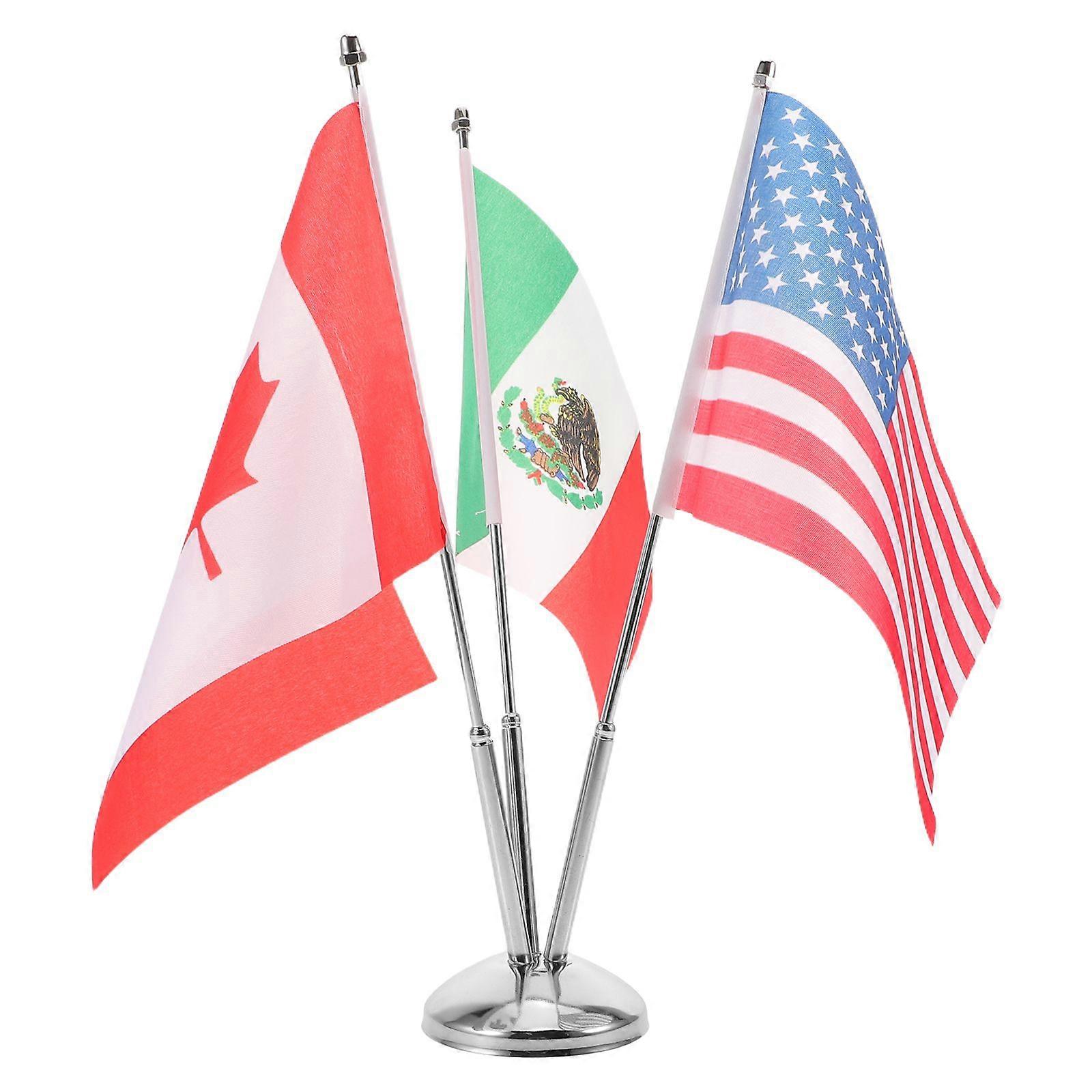 1 Set Table Flag Decoration: USA, Mexico, Canada Flags - Stainless Steel Three-Rod Base - Desk Flagpole Stand For Office Meetings Room Supplies