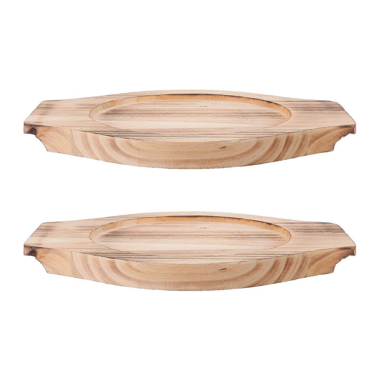 2pcs Wooden Trivet Tray For Korean Stone Bowl - Anti-Slip Heat-Insulating Casserole Pot Base With Double Handles For Kitchen Table 13.5cm Inner Diamet