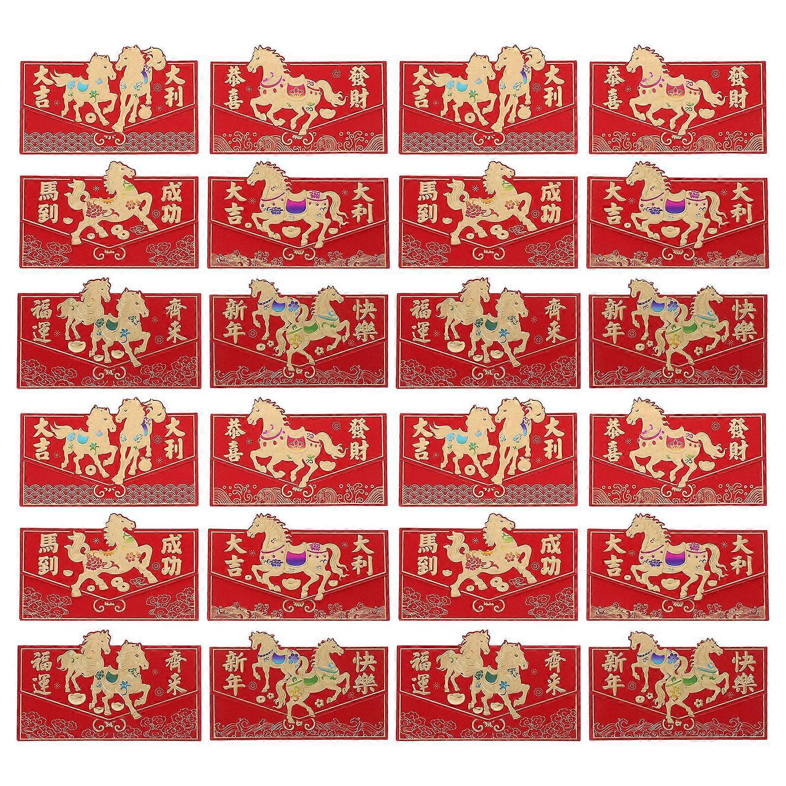 24pcs Chinese Red Envelopes: 2026 Horse New Year Hong Bao Paper Red Pocket Blessing Money Packets for Kids Birthday Good Luck Spring Festival Party