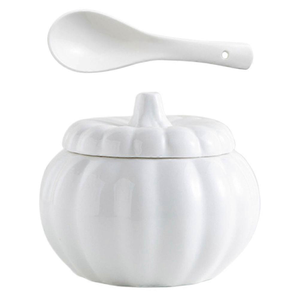 Ceramic Pumpkin Stew Bowl for Food Steaming 1Set with Lid White Color