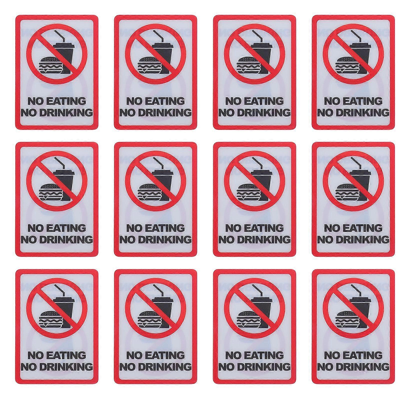 12pcs No Food or Drinking Sticker Warning Sign Decals Vinyl Decal for Indoor Outdoor Window Business Retail Store Factory Use