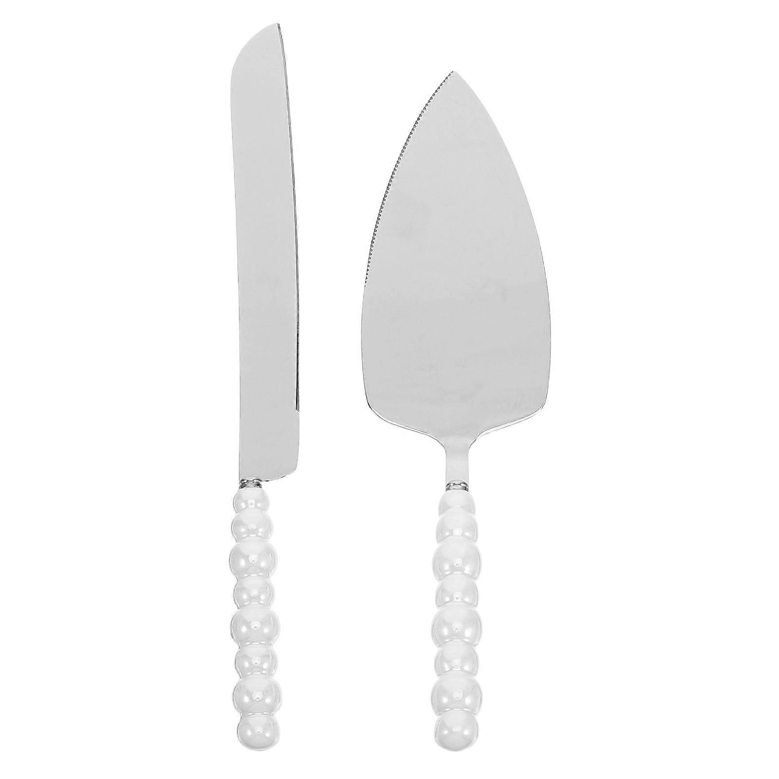 1 Set Pearled Cake Server For Christmas Wedding Birthday Stainless Steel Desserts Cutter Pie Spatula Elegant Serrated Knife Cutting Serving For Party