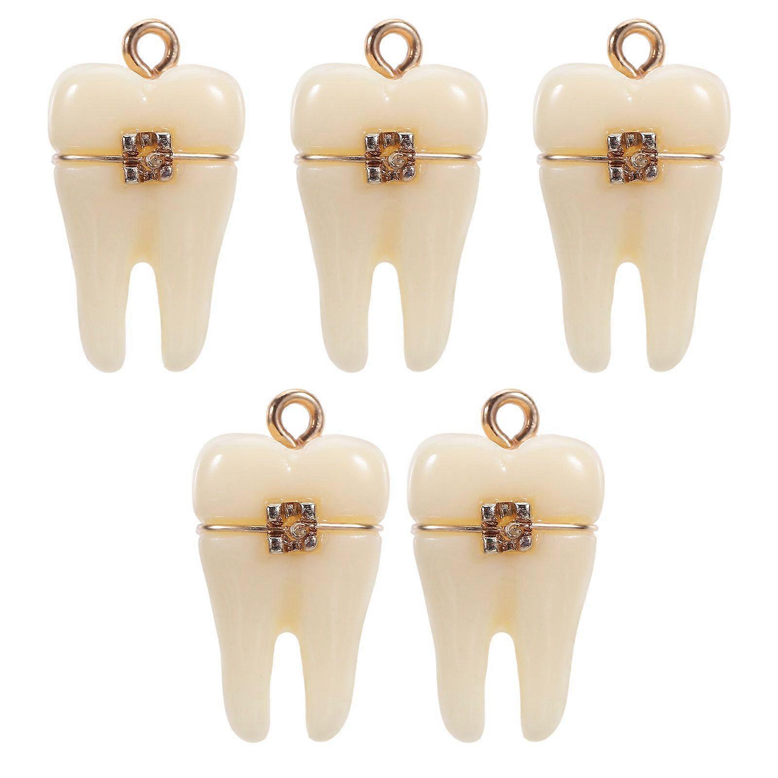 5pcs Funny Realistic Tooth Pendant - Resin Tooth With Brace Dangle Charms For Necklace Earrings Bracelet Diy Jewelry Making - Cute Craft Findings Supp