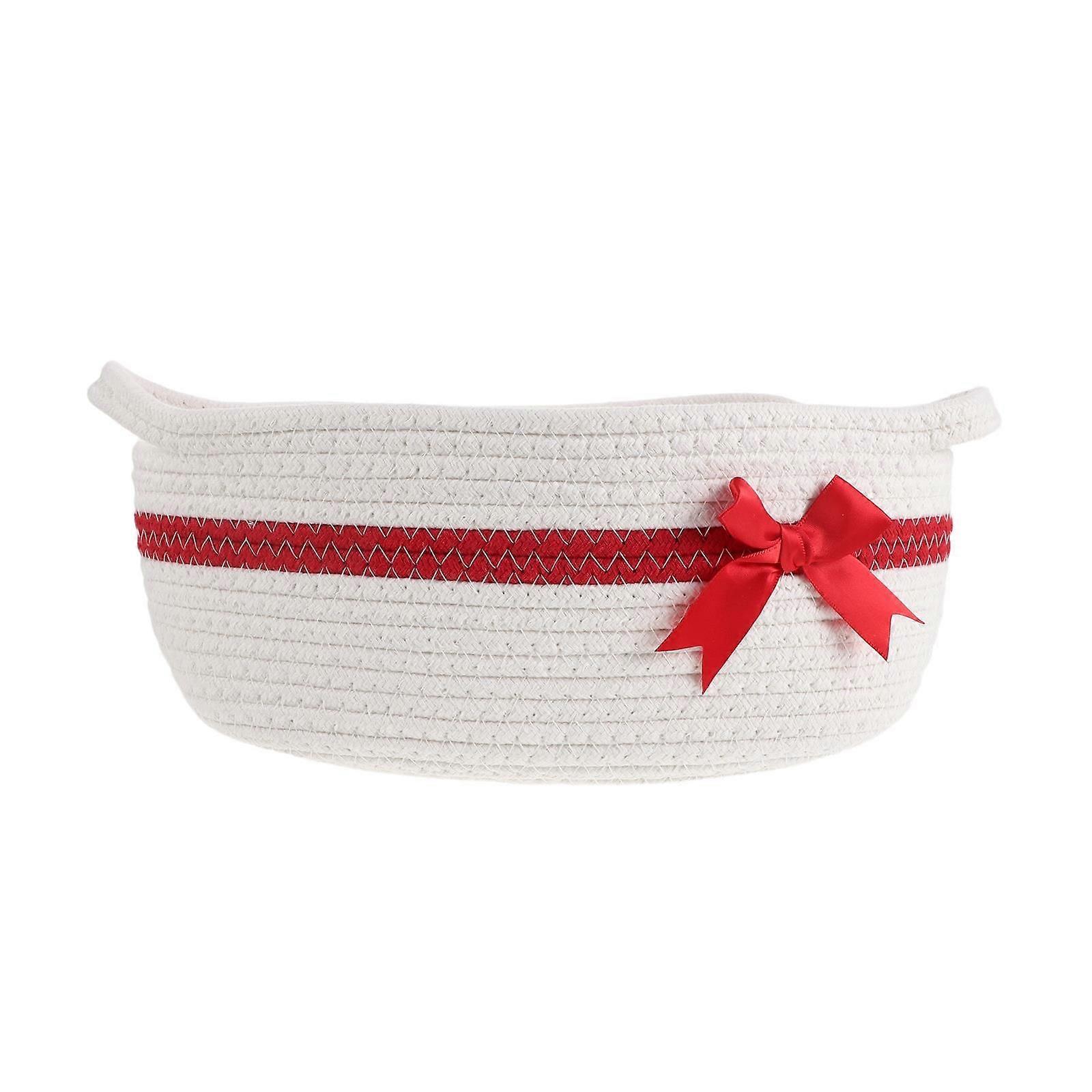 Christmas Gift Basket Empty with Bow: Woven Cotton Rope Storage Basket with Handles for Christmas Wedding Baby Showers Holiday Decor - Includes Clear