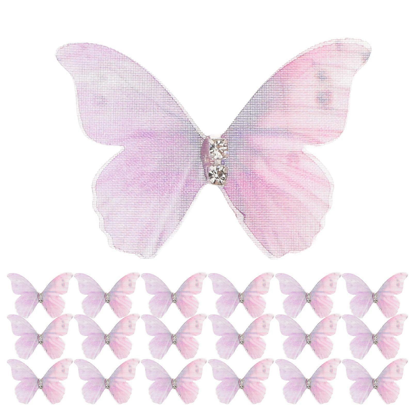 100pcs Double Layer Tulle Butterfly Hair Clips - 4.5cm Mini Purple Hair Barrettes Accessories - Cute Ancient Costume Hairpin For Women Han Chinese Cos