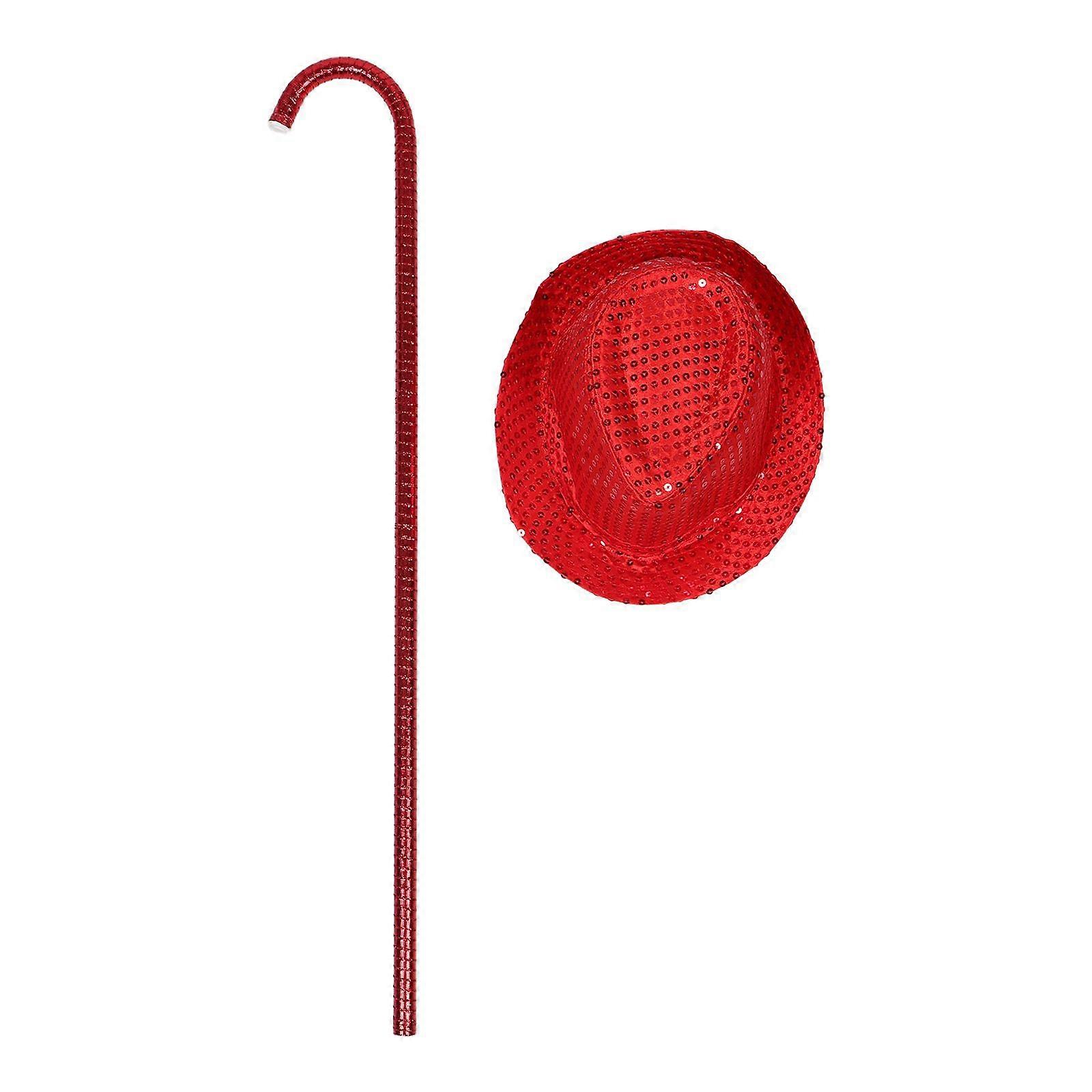 Sequin Bowler Hat For Kids- Kids Top Hat For Girls & Boys - Children Dance Cane Dance Walking Stick Performance Crutch Jazz Decorative Props Red