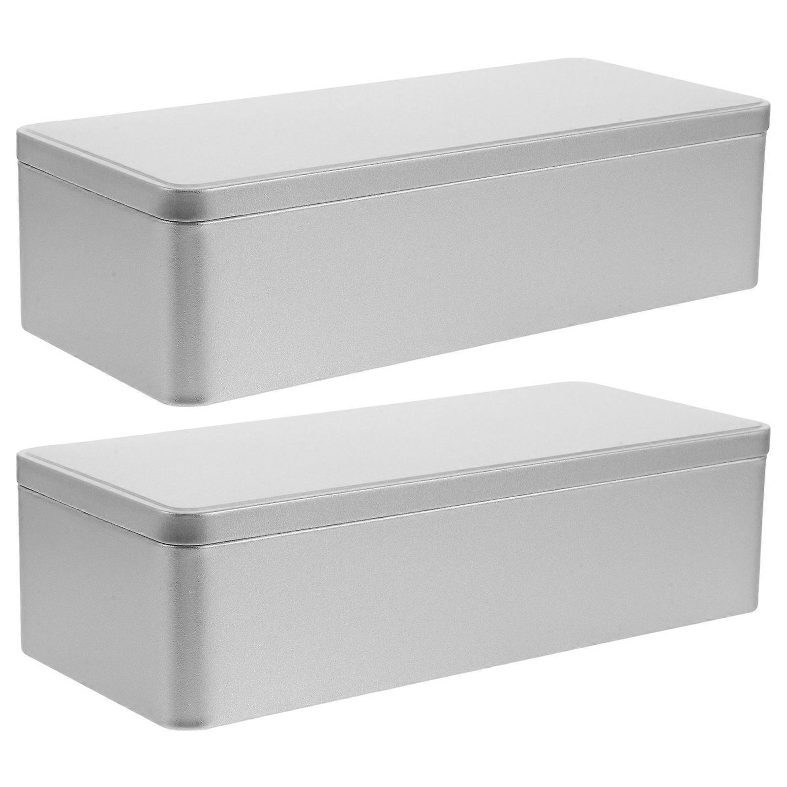 2pcs Empty Tinplate Box - Rectangular Candy Jar Silver Portable Small Cookie Containers For Christmas Snack Chocolate Stationery Key Organizer
