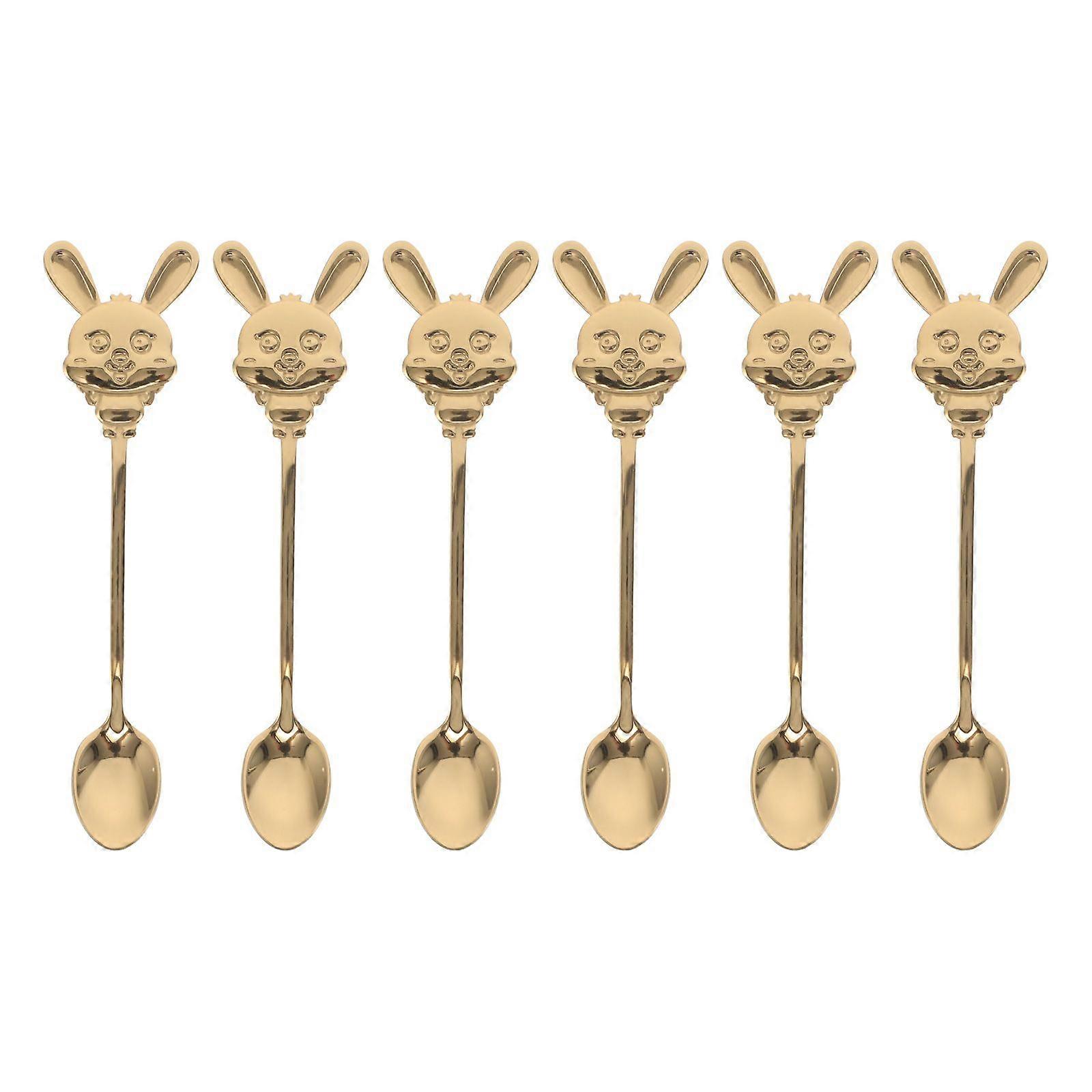 6PCS Rabbit Coffee Spoon: Stainless Steel Espresso Spoon - Cute Bunny Dessert Teaspoons for Soup Yogurt Desserts Easter Party Supplies