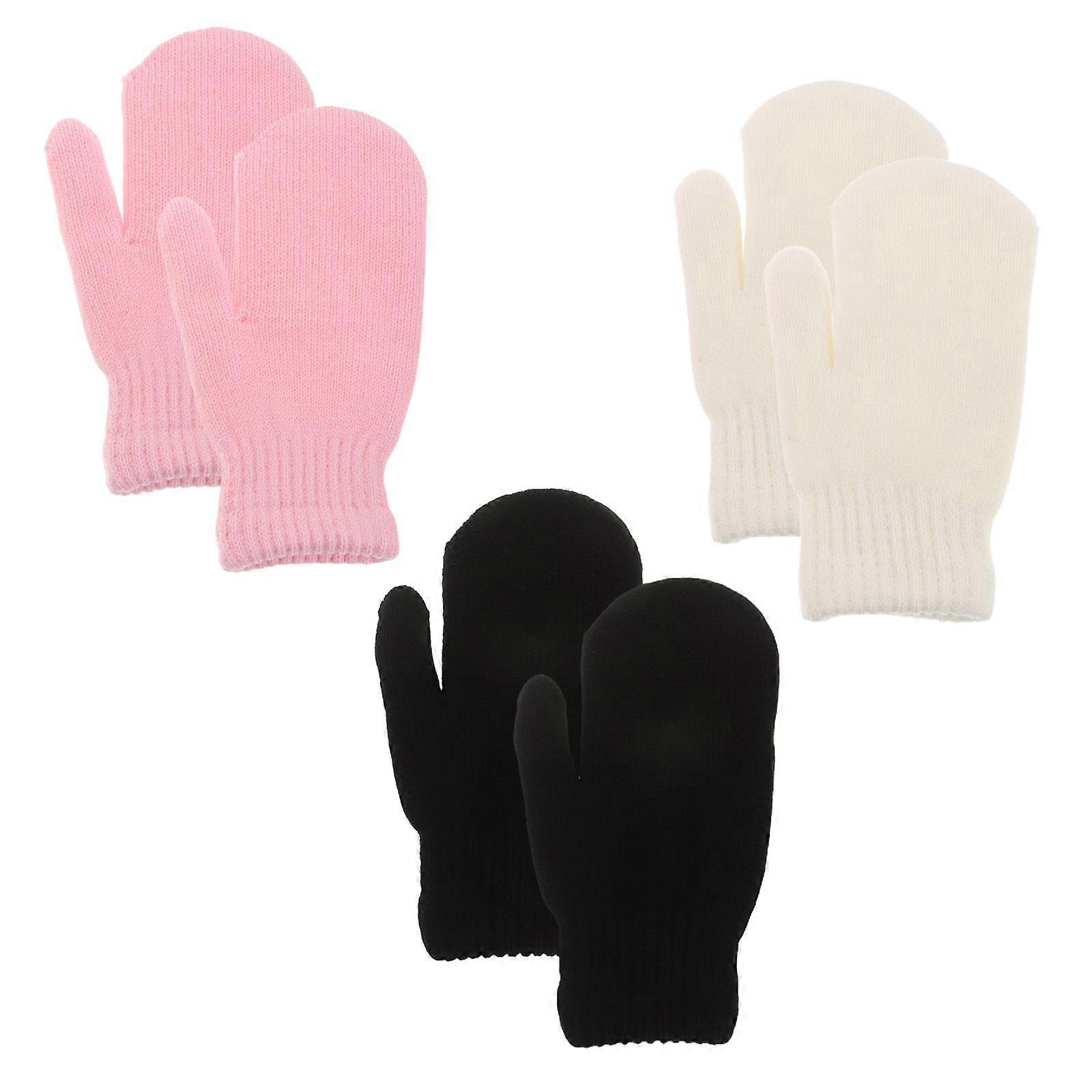 3 Pairs Thick Knit Soft Mittens For Cold Weather - Double-Layer Fleece Lined Winter Mittens - Warm Cozy Outdoor Gloves For Women & Men