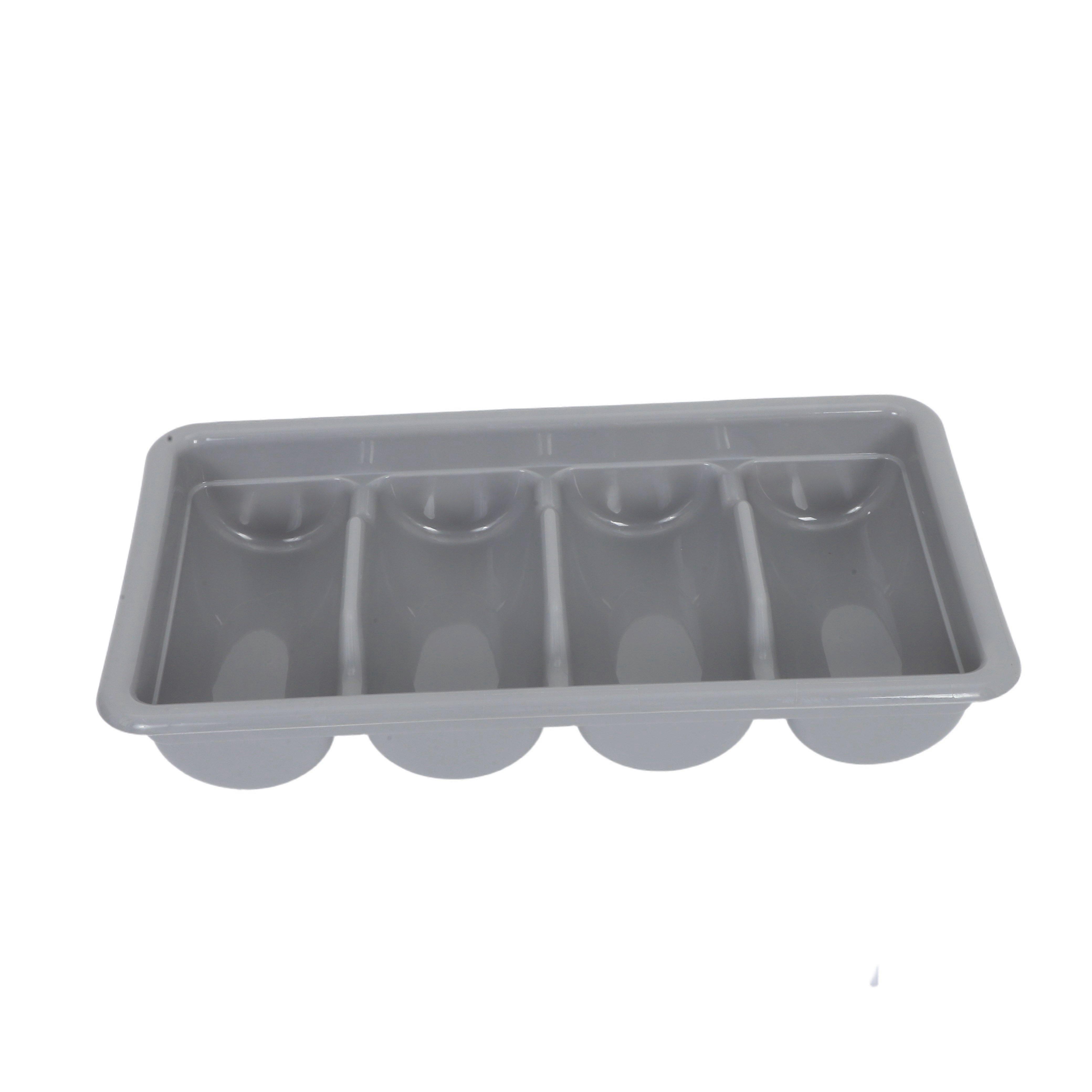 Kitchen Utensil Holder Divider For Spoons Forks - 4-Grid Plastic Cutlery Tray For Countertop - Space-Saving Silverware Organizer 20''X11'' Grey
