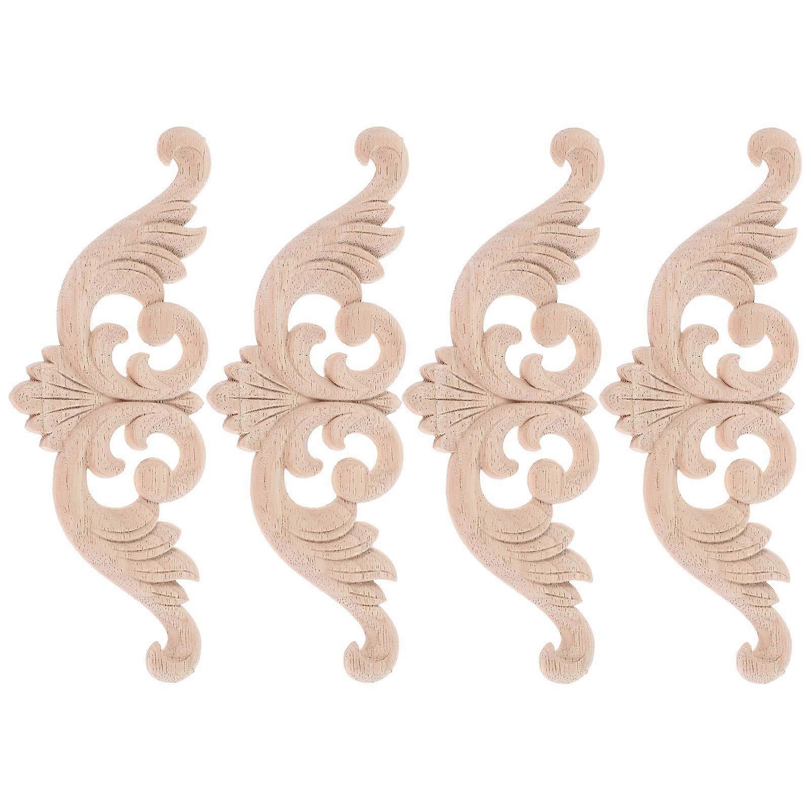 4pcs Wood Carved Onlays European Style Wooden Appliques DIY Unpainted Wood Appliques for Furniture Cabinet Door Trim Decoration