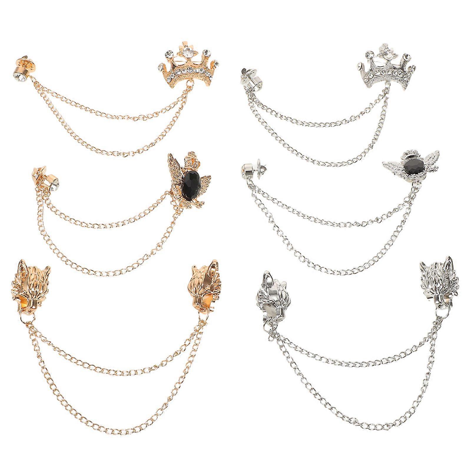 6pcs Brooch For Men Suit: Vintage Crown Brooch Pin - Fashion Suit Collar Pin For Cardigan Sweater - Decorative Clothing Clip Tassel Shirt Collar Chain