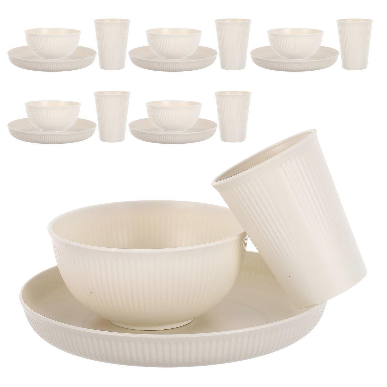 18pcs Dinnerware Set with Plates Bowls and Cups Unbreakable Kitchen Tableware Reusable Dining Plate for Camping Picnics