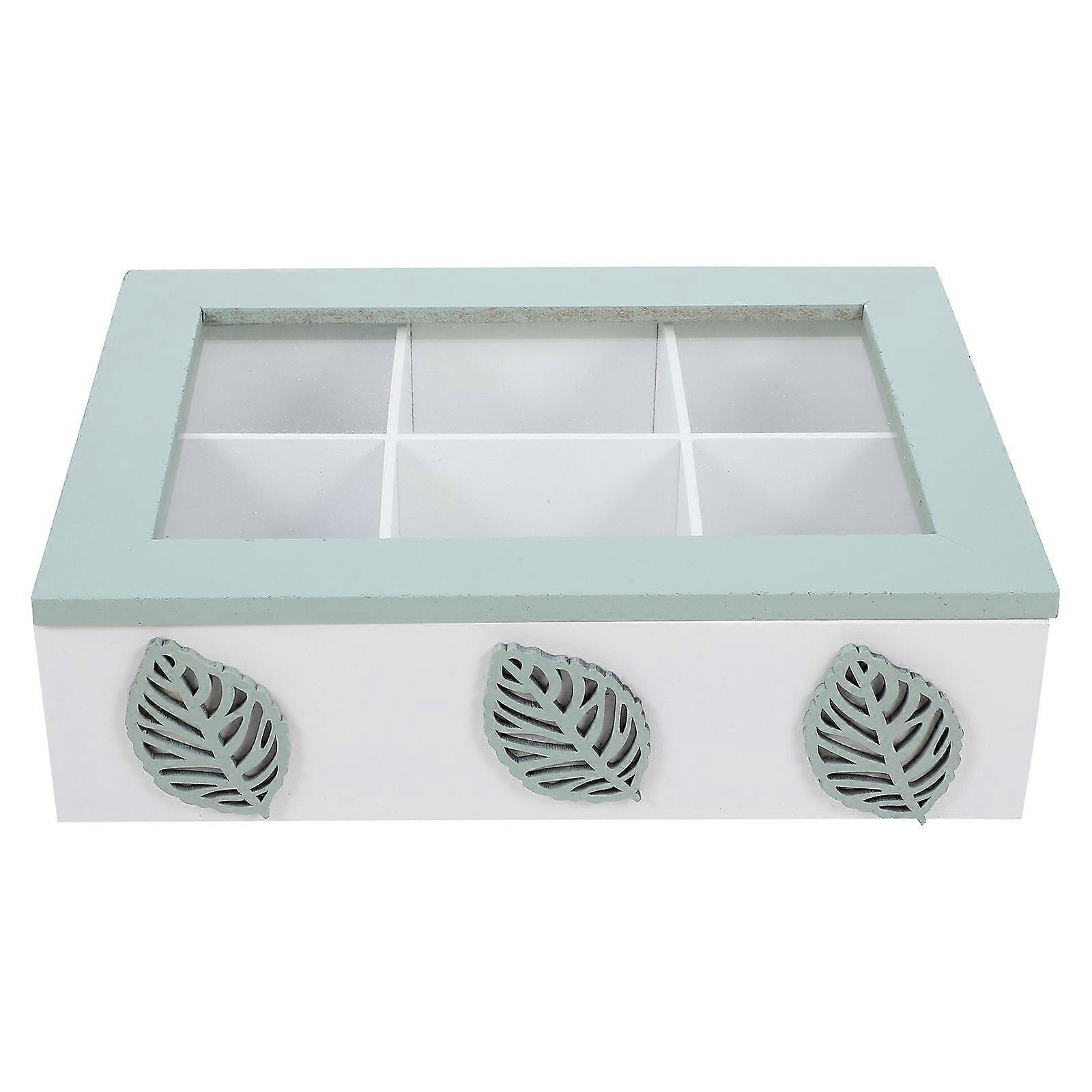 Wooden Box For Tea Bags - Decorative Wood Chest With 6 Compartments And Clear Glass Lid - Divided Storage Container For Beverage Supplies Snack Jewelr