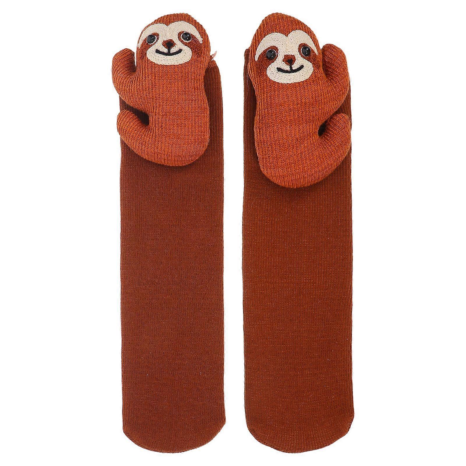 1 Pair Animal Socks: Christmas Stocking - Crocheted Sloth Hug Socks Cute Long For Women Warm Winter Holiday Festive Floor (Coffee)