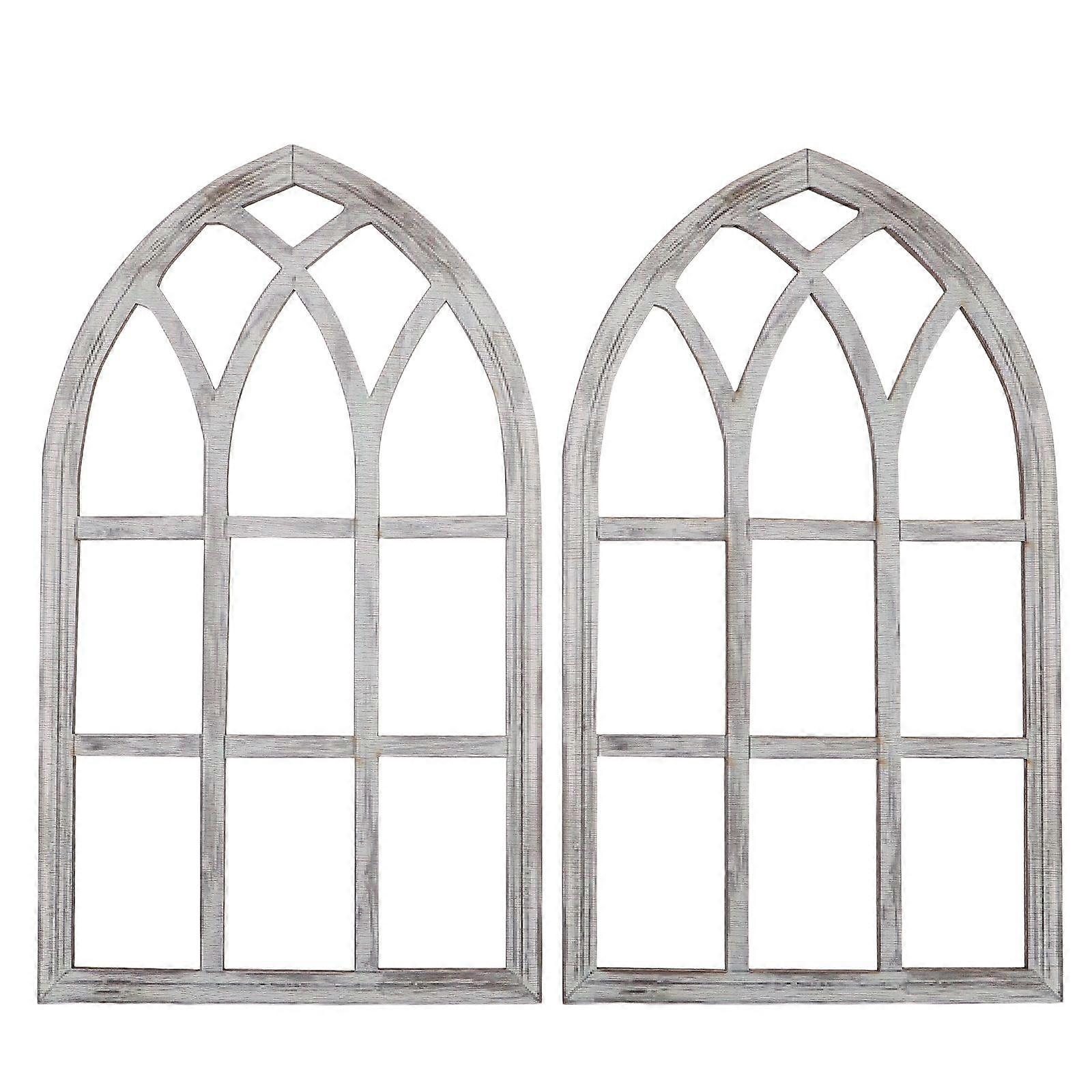 2pcs Arched Window Frame Wall Decor: Rustic Wood Cathedral Style Decorative Faux Window for Farmhouse Living Room - Vintage Church Wall Decoration