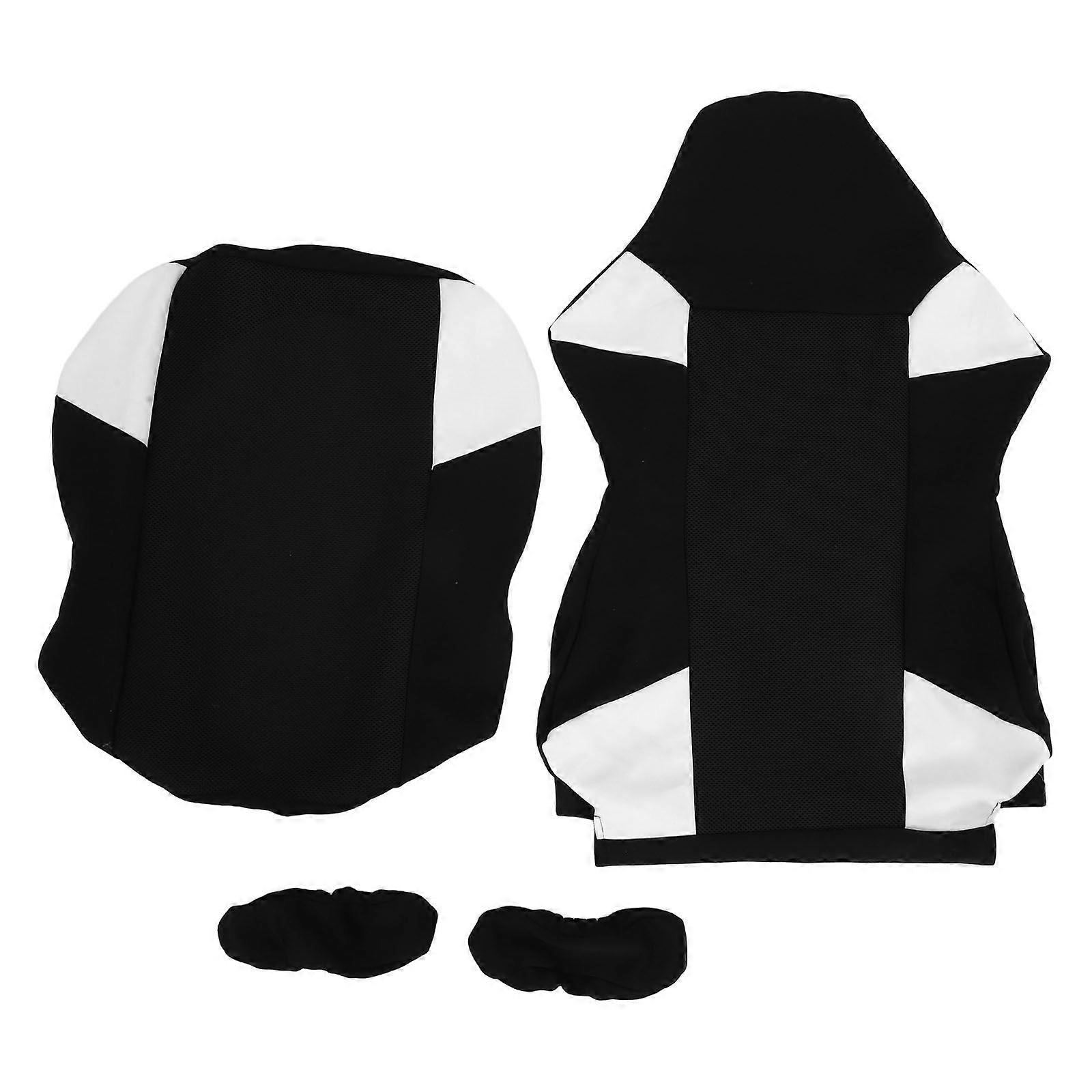 1 Set Stretchable Gaming Chair Cover - Black White Mesh Cloth Chair Seat & Backrest & Armrest Slipcover - Breathable Scratch Resistant Protector For O
