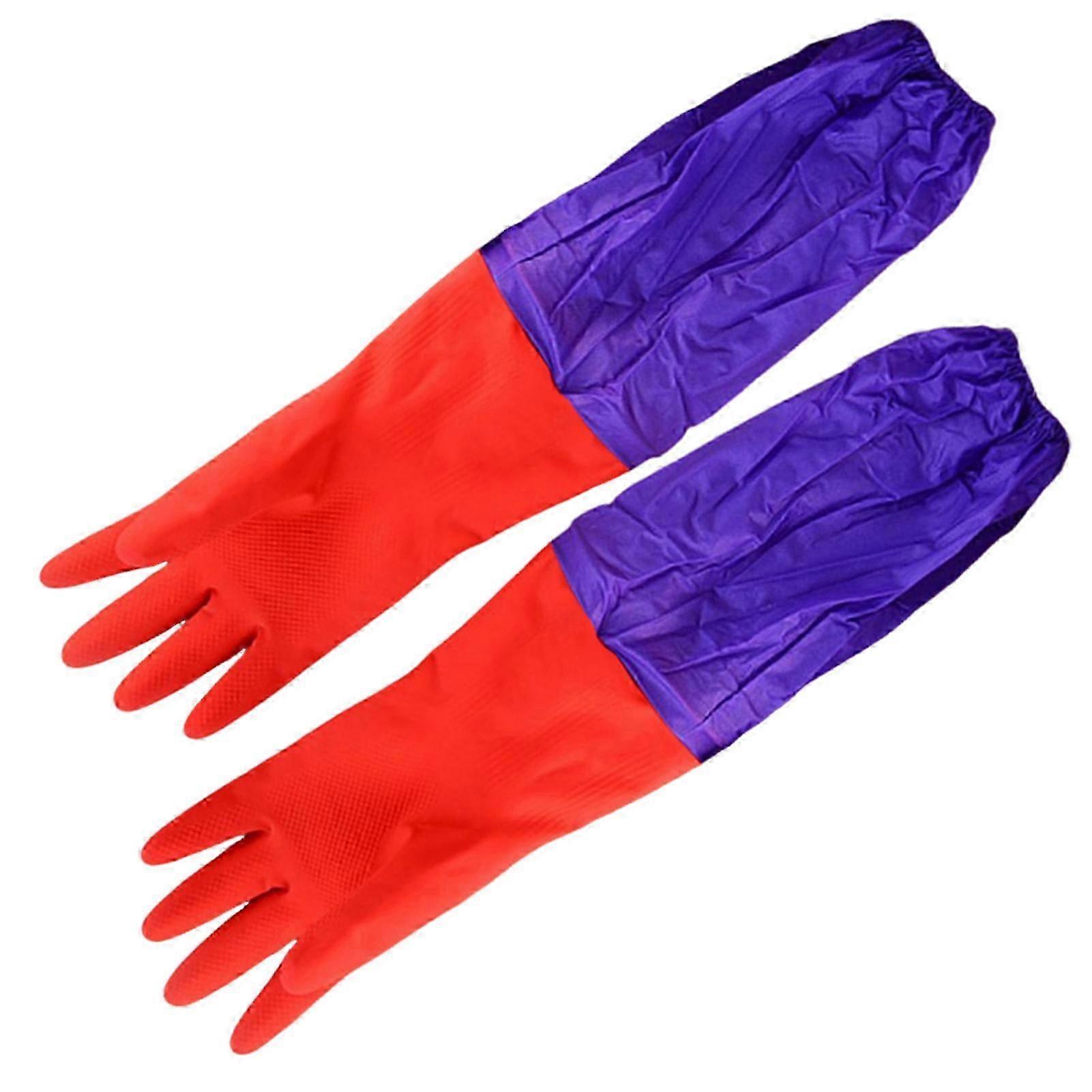 Description Features: Fleece-Lined Interior: For exceptional warmth and comfort. Thickened Design: Enhances durability and provides better insulation. Extra-Long Cuff: Offers extended protection up the arm. Superior Thermal Insulation: Keeps hands warm in cold water. Ideal for Kitchen Dishwashing: Protecting hands during washing tasks. Versatile Household Protection: Suitable for various cleaning chores. Soft and Comfortable Fit: Designed for prolonged wear without discomfort. Notice: 1.Actual color may be slightly different from the image due to different light effect 2.Please allow 1-3cm deviation due to manual measurement Description: Material: latex Size: One size fits all Package List: 1 Pair Gloves