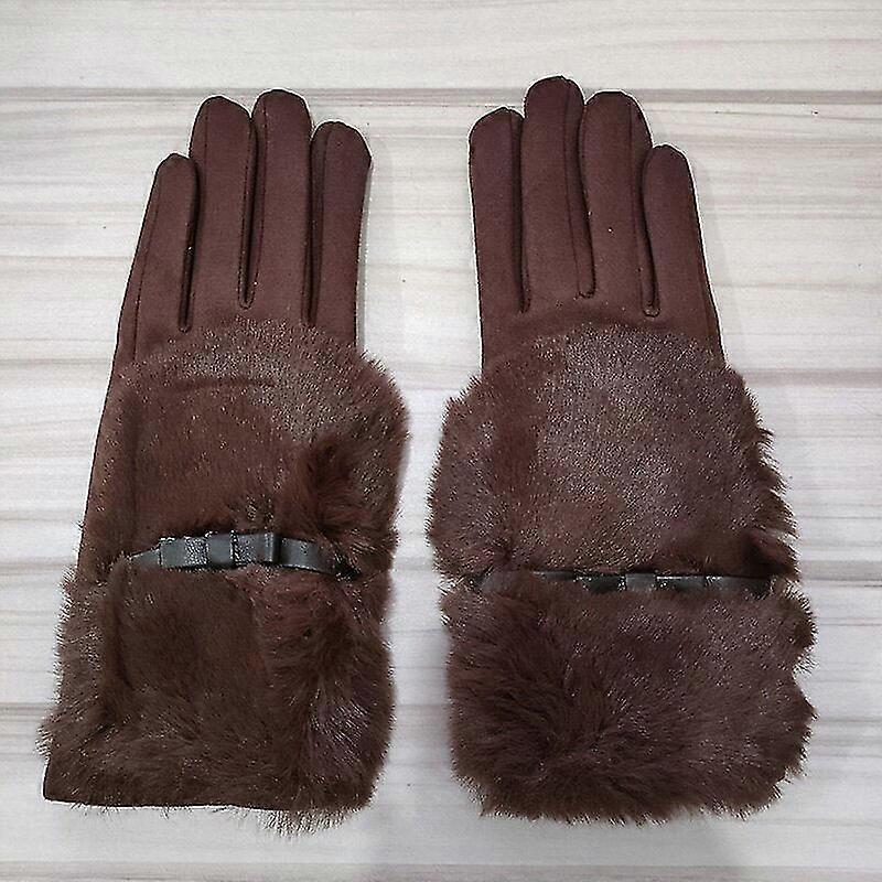 2025 Fashion Women Winter Warm Suede Leather Touch Screen Glove Female Faux Rabit Fur Embroidery Plus Velvet Thick Driving Gloves H92