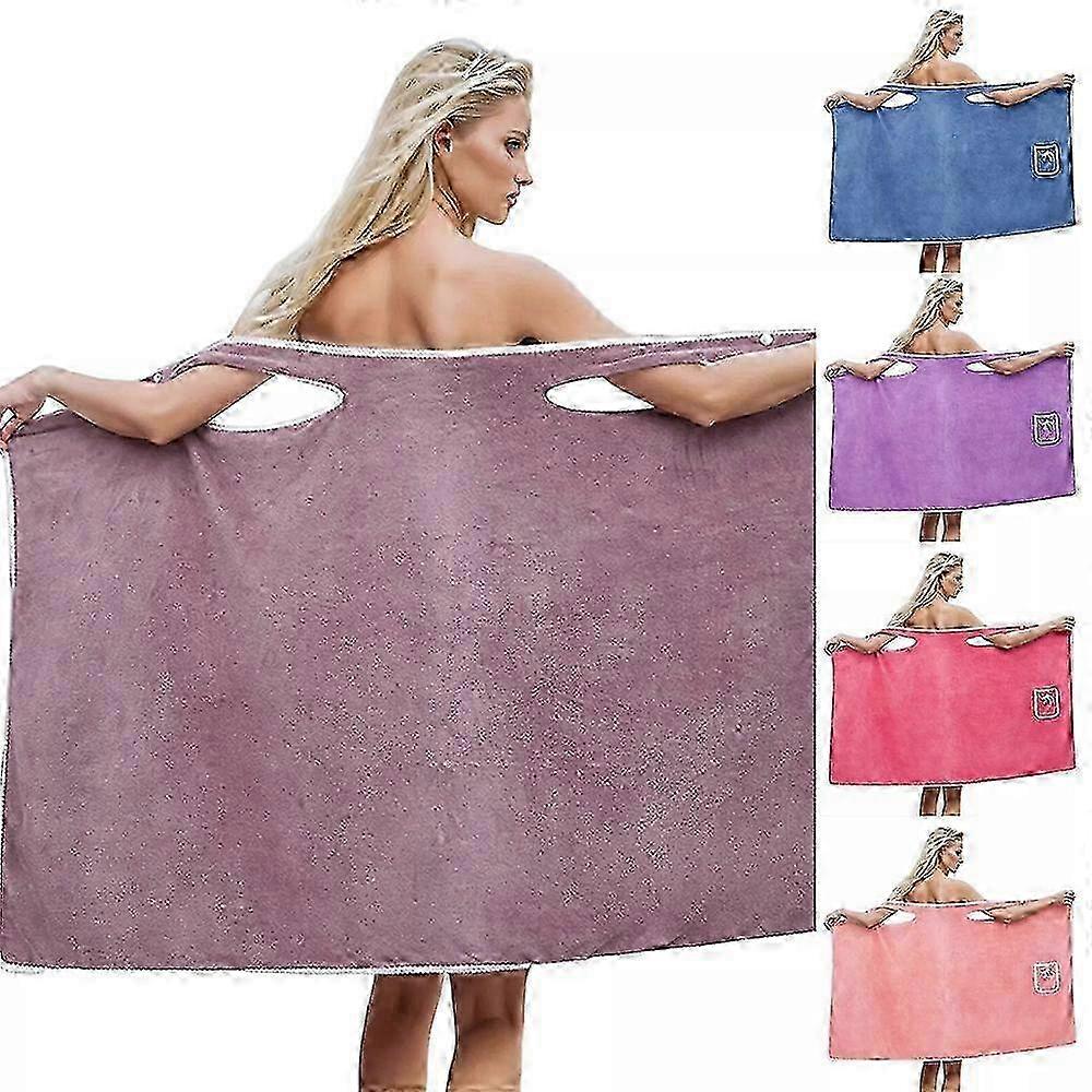 Women's Wearable Shower Skirt, Shower Spa Wrap Towel Dress Quick Dry Bath Robe purple red