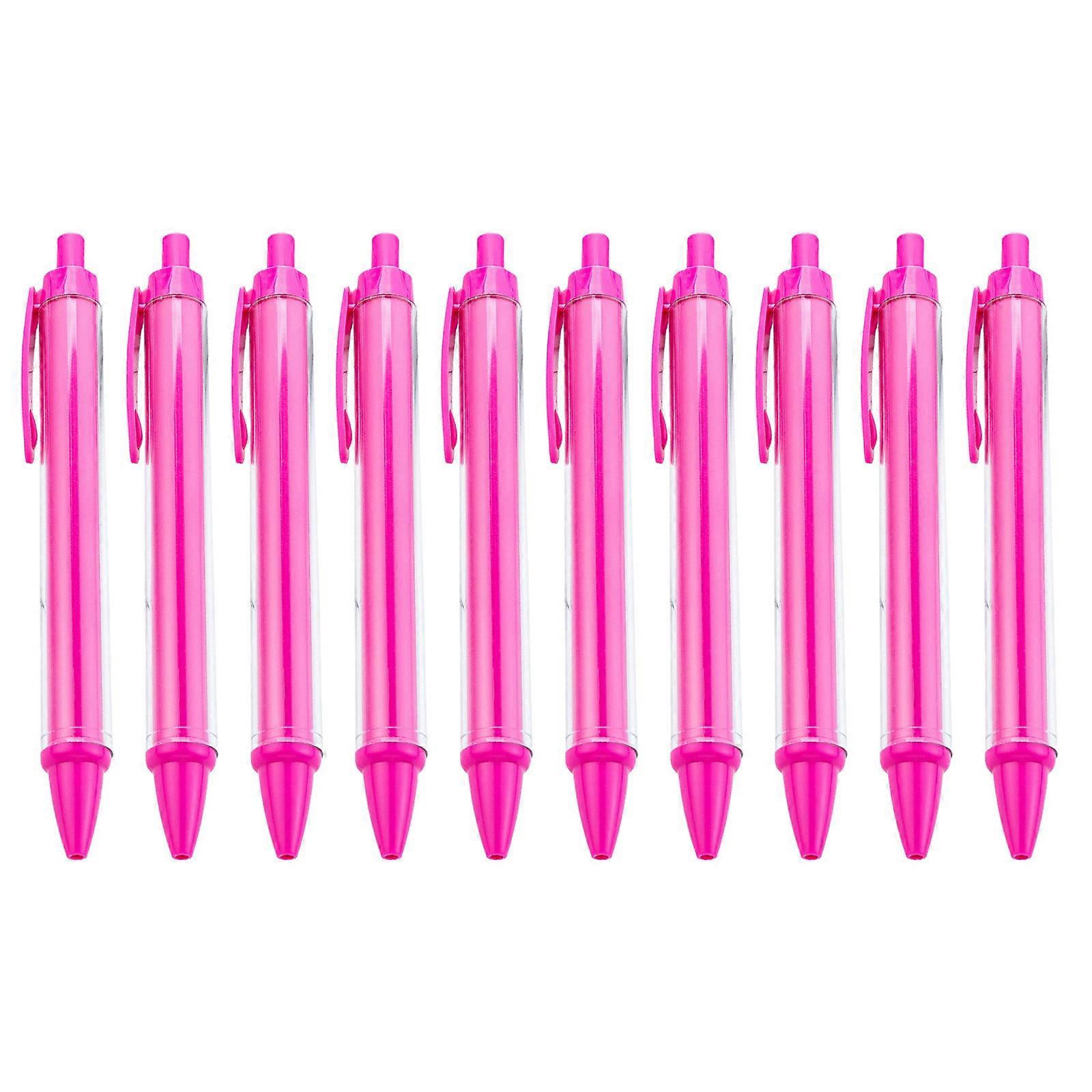 10Pcs Retractable Ballpoint Pen Ergonomic Grip Multipurpose Plastic Pens Black Inks for Writing Note Taking Journaling Rose red