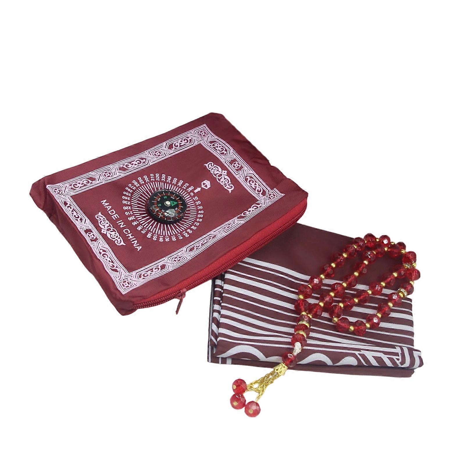 Islamic Prayer Carpet With Direction Indicators Travel Friendly Prayer Rug and Beads For Men Women For Outdoor Use Red