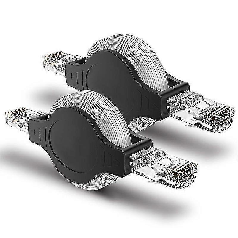 A 2PCS Portable and Retractable RJ45, Cat 5 and 5E Ethernet and LAN Network Patch Cable, 1.5M/5FT long, at 10/100 Mbps.