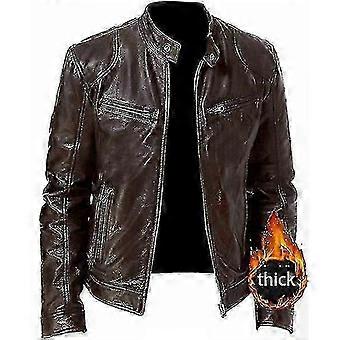A Slim-Fit, Stand-Up Collar Men's Leather Motorcycle Jacket with a Windproof and Zipper Closure.
