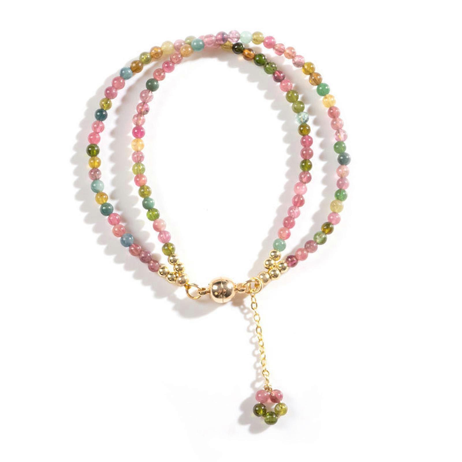 Thin Double Strand Copper Bracelet Rainbow Color Tourmaline 3mm Beads 17cm Length Comfortable Lightweight Wear Multicolor