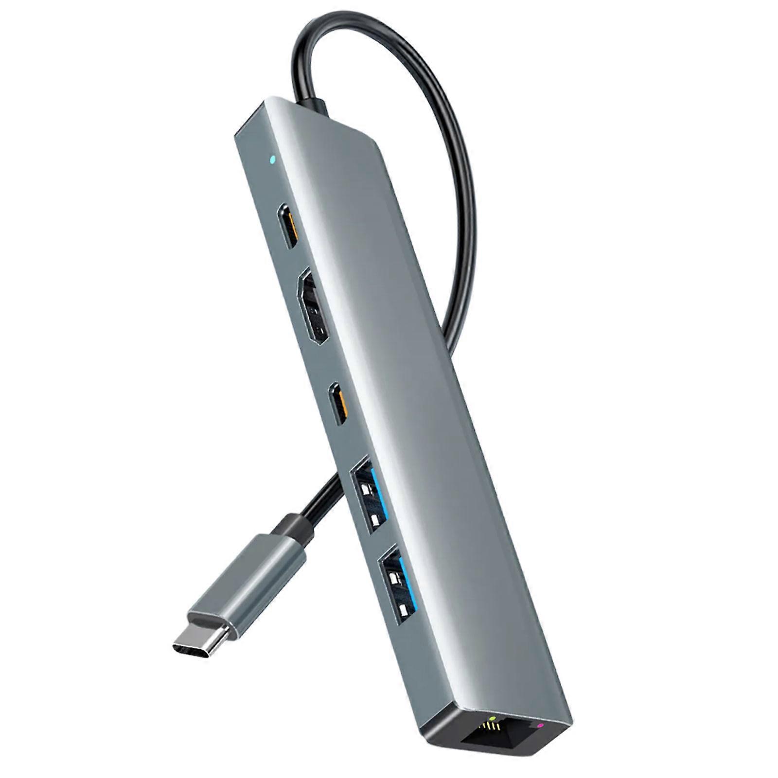 Type C to 6 Port USB3.0 2xUSB3.0 4K HDTV Gigabit Ethernet Adapter Multi Splitter Fast Speed 5Gbps 100W Charging Multicolor