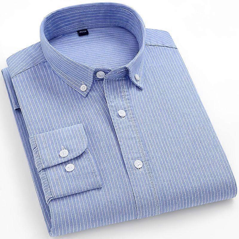 Spring And Autumn Men's Pure Cotton Striped Long-Sleeved Shirt, Business Casual, All-Cotton No-Iron Oxford Fabric Shirt Base For Men's Wear