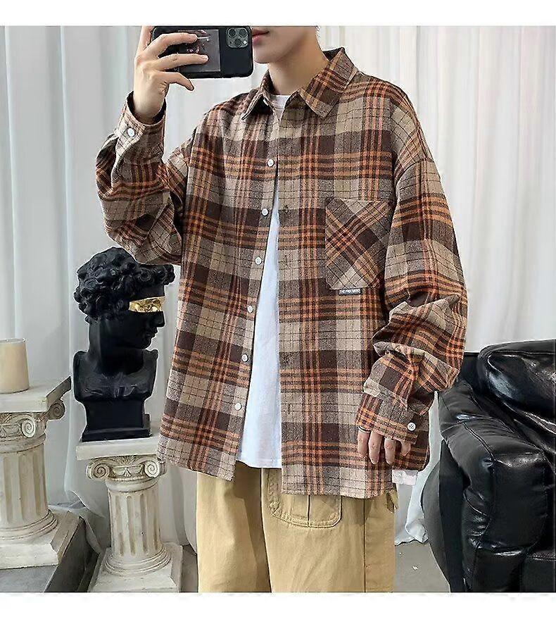 A Cool And Stylish Student In A Plaid Long-Sleeved Shirt, Wearing A Loose And Retro Spring And Autumn Casual Shirt Jacket